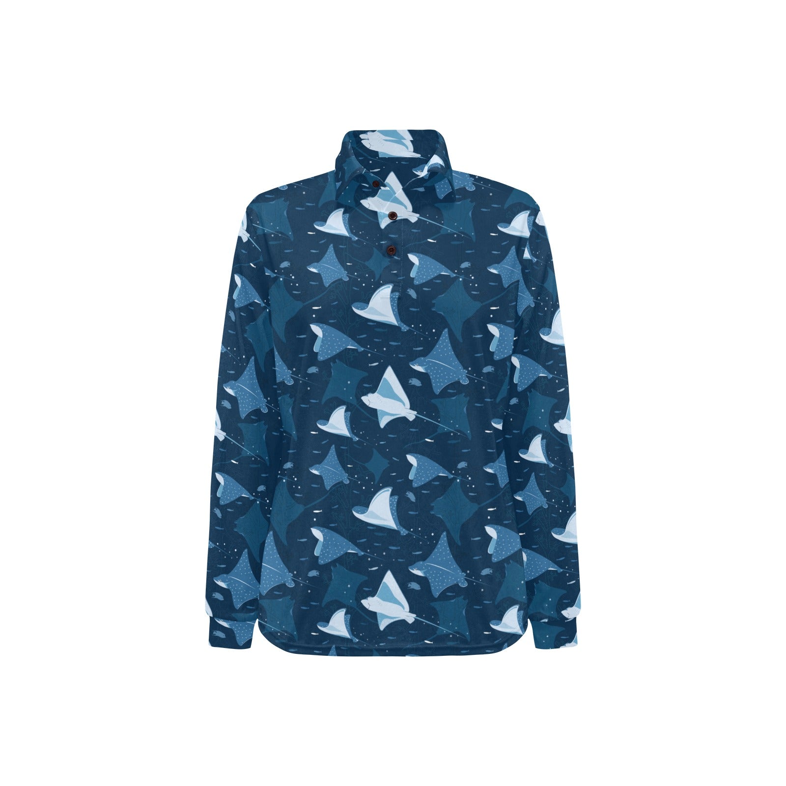 Stingray Pattern Print Design 04 Women's Long Sleeve Polo Shirt