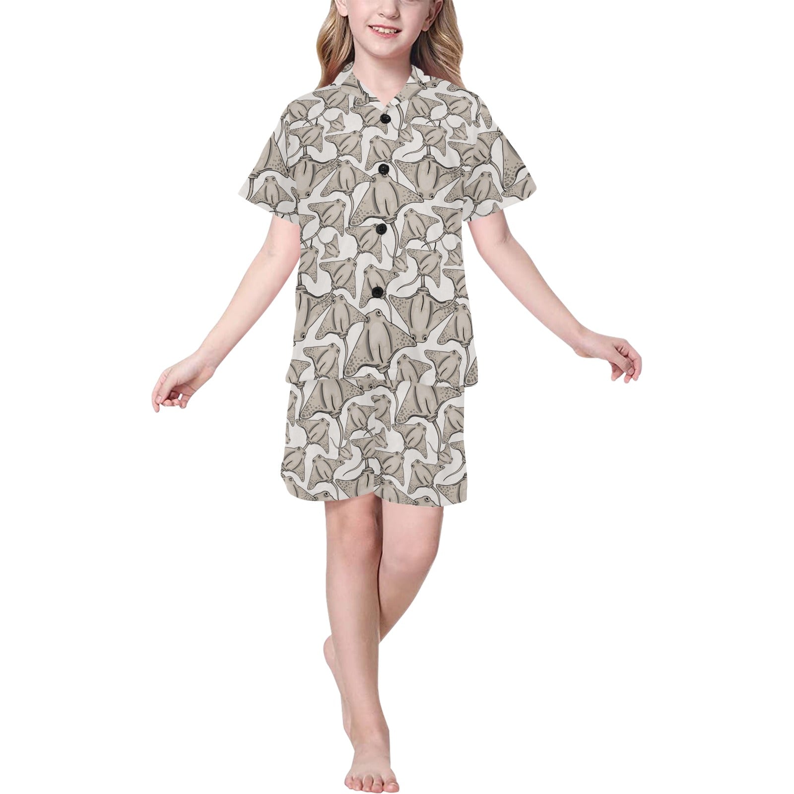 Stingray Pattern Print Design 05 Kids' Boys' Girls' V-Neck Short Pajama Set