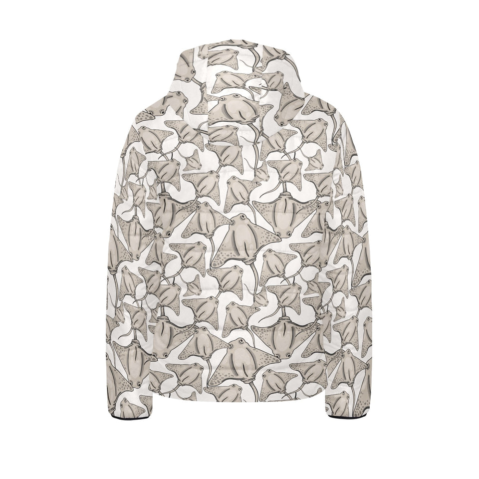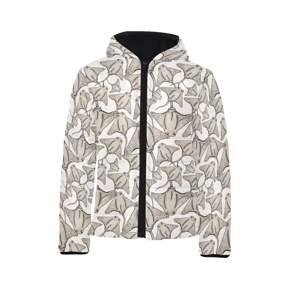 Stingray Pattern Print Design 05 Kids' Boys' Girls' Padded Hooded Jacket