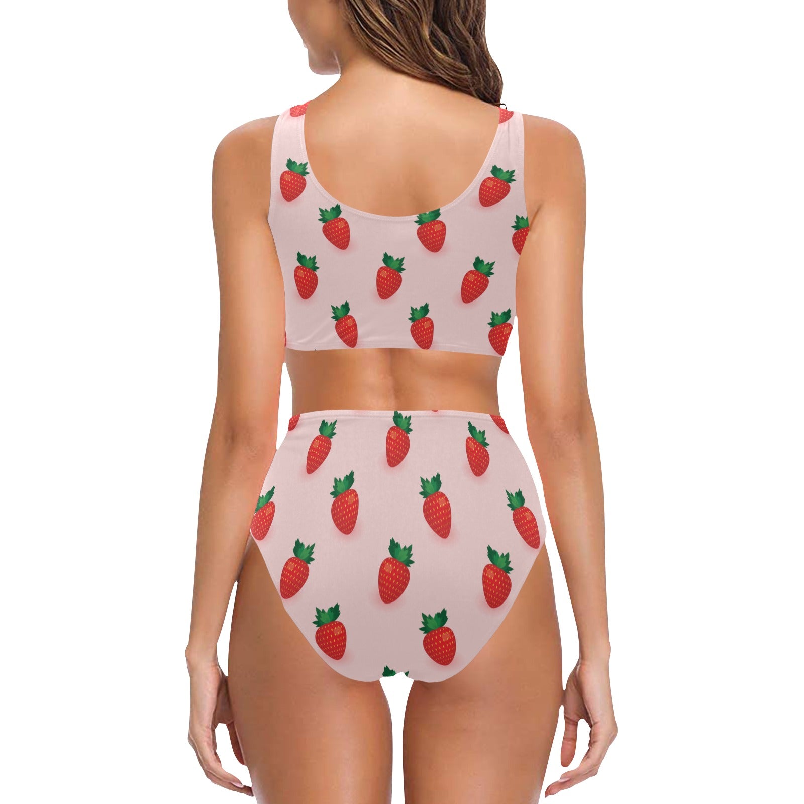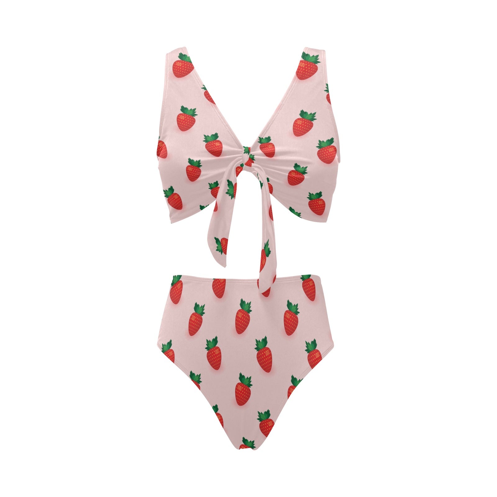 Strawberry beautiful pattern Chest Bowknot High Waisted Bikini Swimsuit