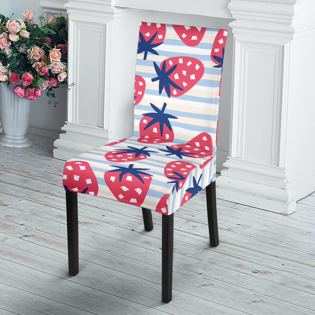 Strawberry Pattern Blue Lines Background Dining Chair Slipcover