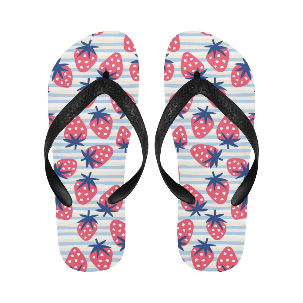 Strawberry pattern blue lines background Unisex Flip Flops is a uniqued design and limited item. It made to order, hand printed, and sewn with love in our factory.