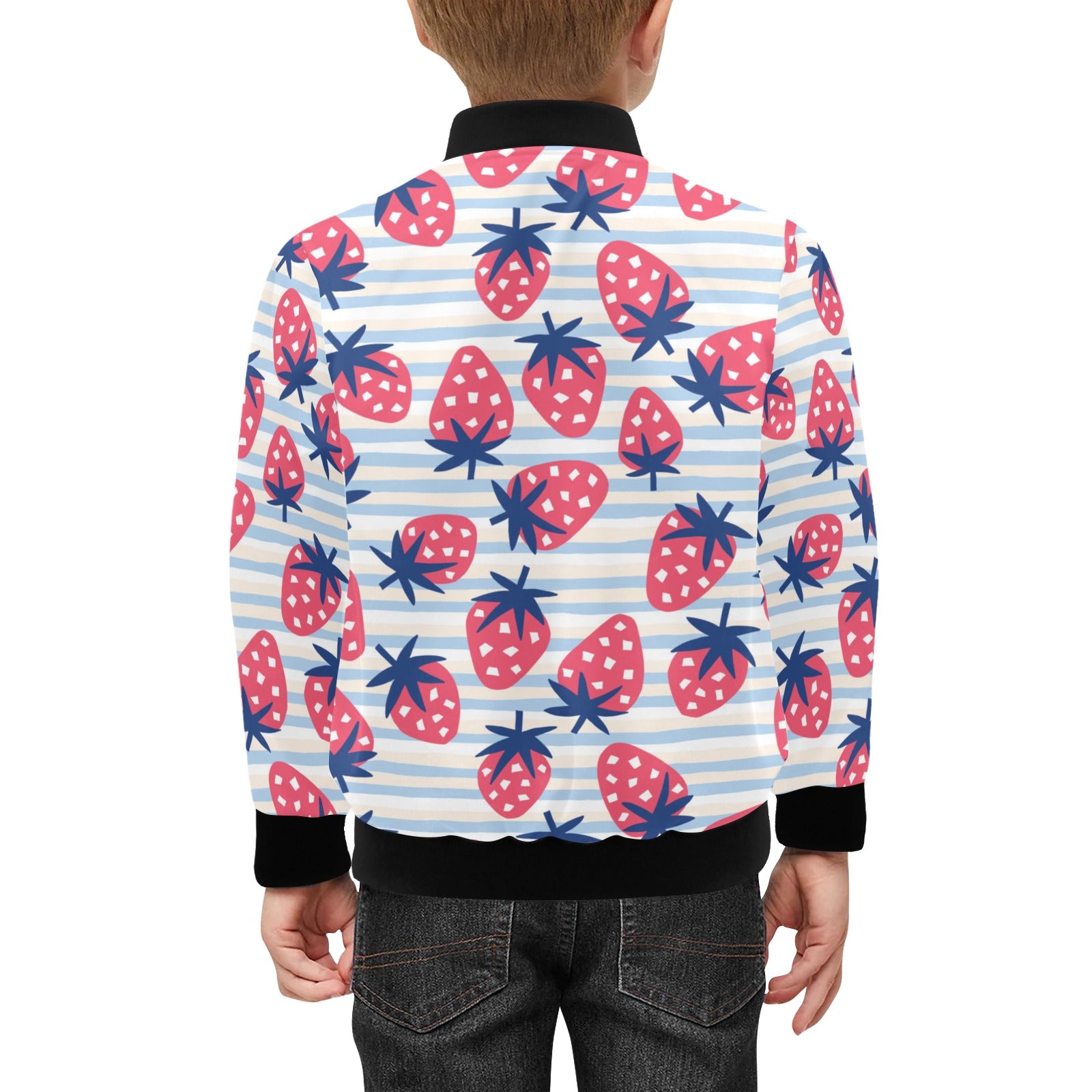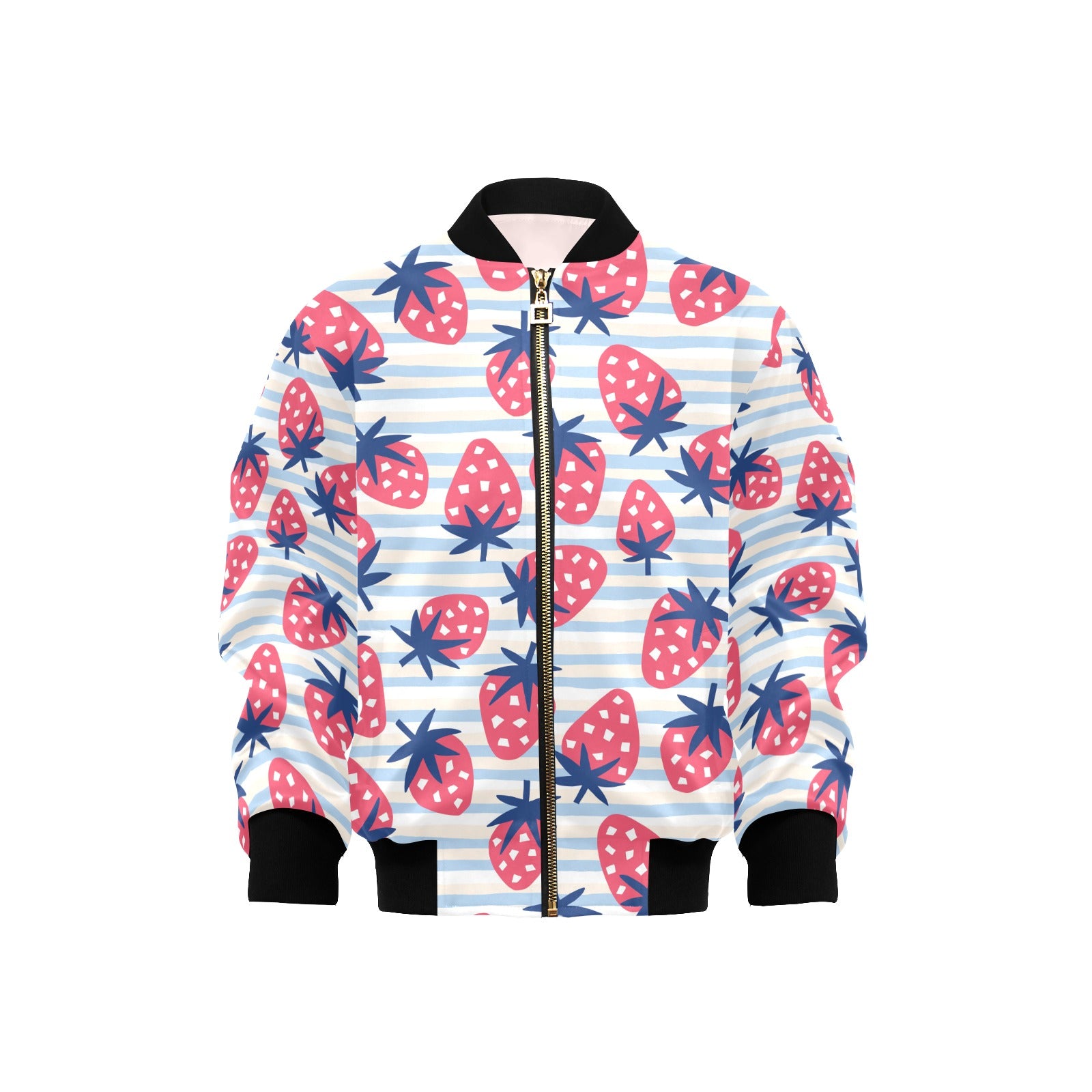 Strawberry pattern blue lines background Kids' Boys' Girls' Bomber Jacket