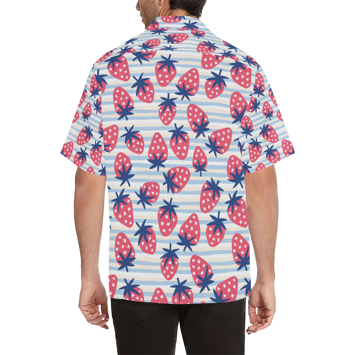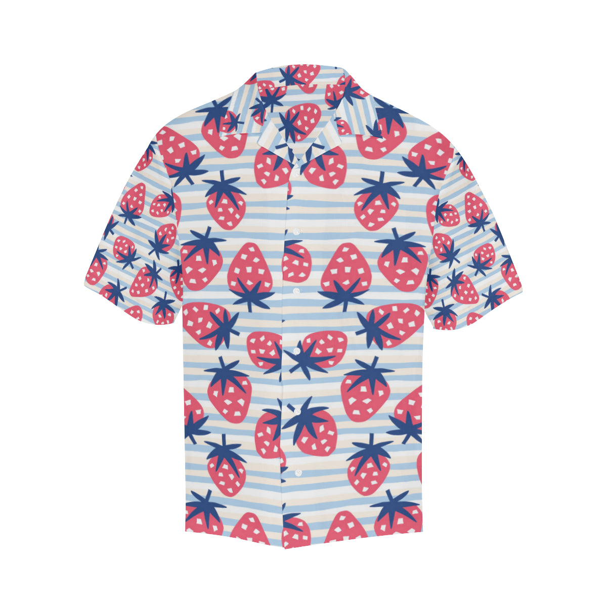 Strawberry pattern blue lines background Men's All Over Print Hawaiian Shirt is a uniqued design and limited item. It made to order, hand printed, and sewn with love in our factory.
