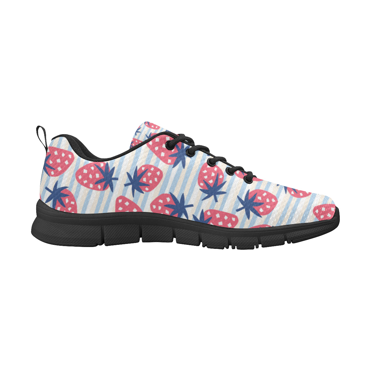 Strawberry pattern blue lines background Men's Sneaker Shoes are uniqued design and limited item. It made to order, hand printed, and sewn with love in our factory.
