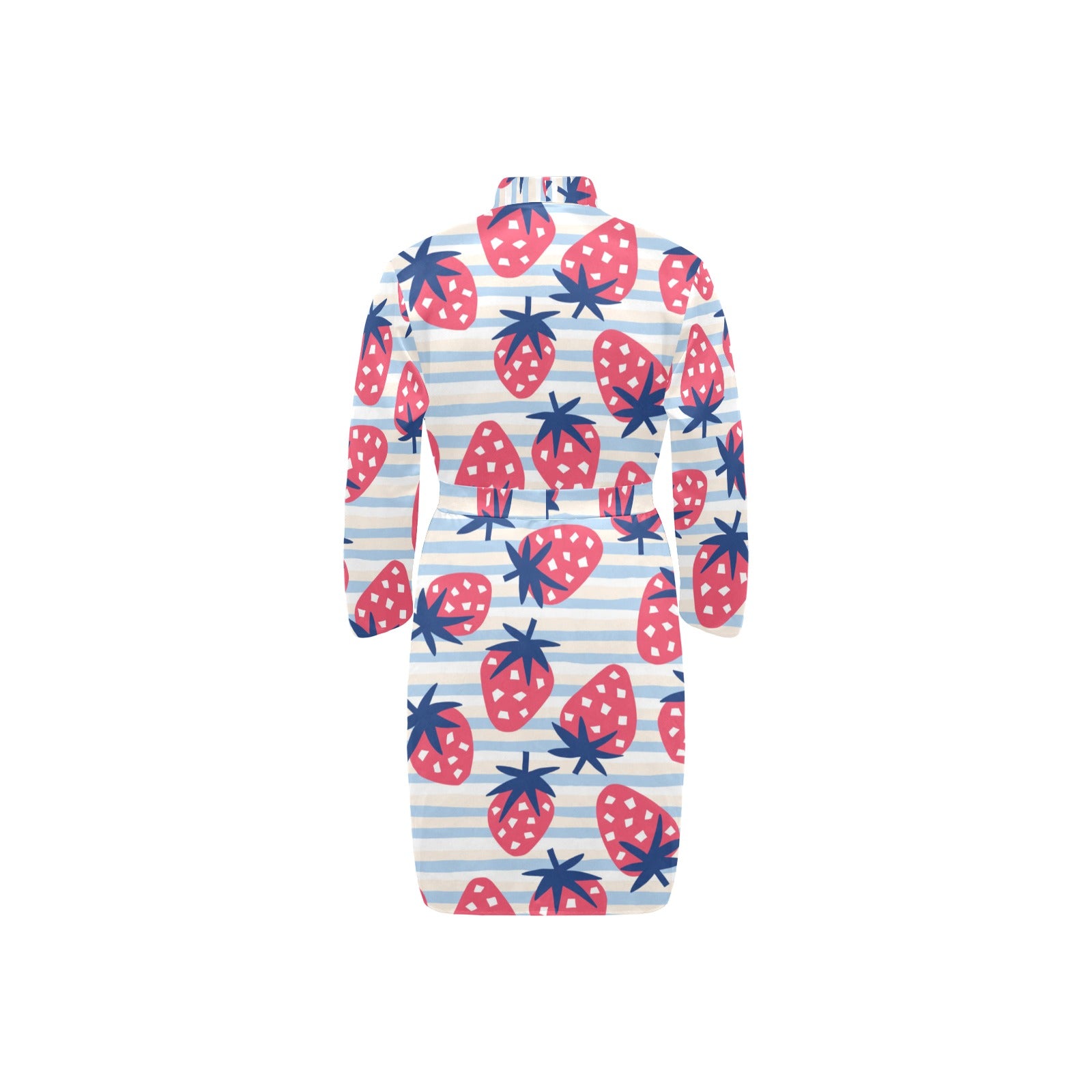 Strawberry pattern blue lines background Men's Long Sleeve Belted Night Robe