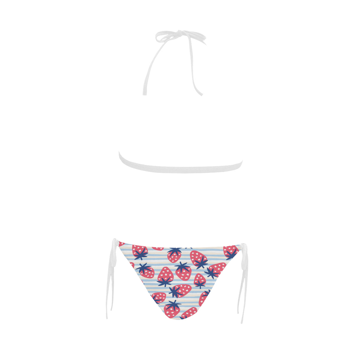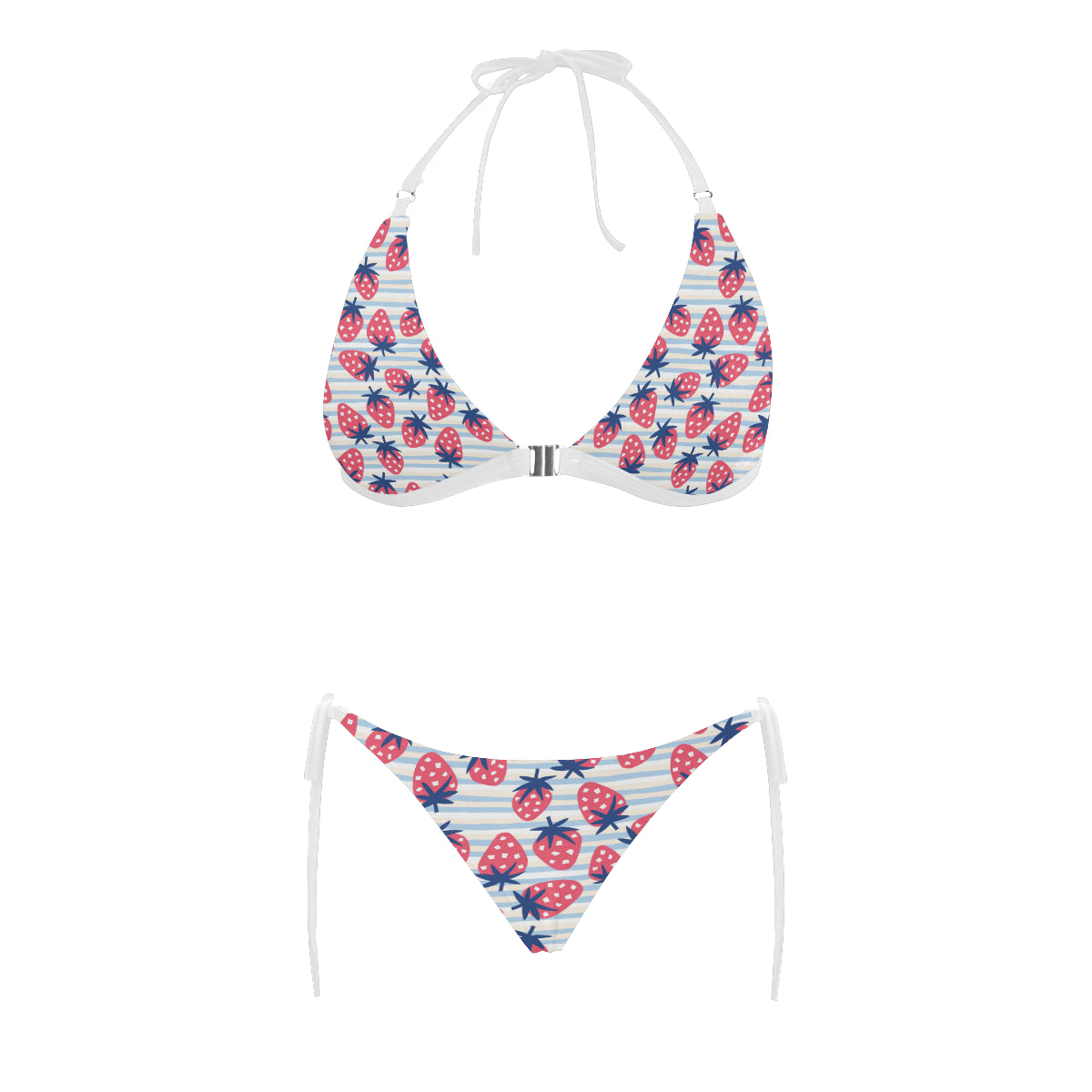 Strawberry pattern blue lines background Sexy Bikinis Two-Piece Swimsuits are uniqued design and limited item. It made to order, hand printed, and sewn with love in our factory.