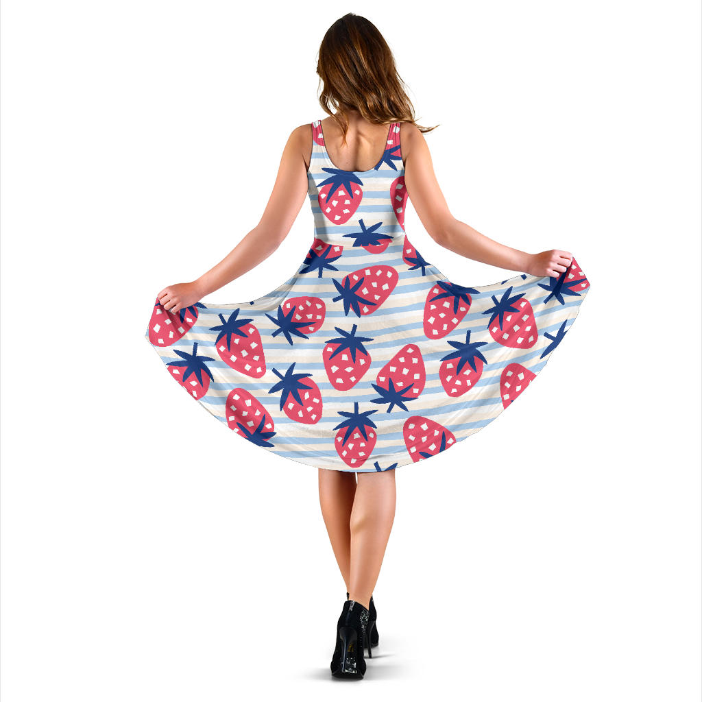 Strawberry pattern blue lines background Sleeveless Midi Dress is a uniqued design and limited item. It made to order, hand printed, and sewn with love in our factory.