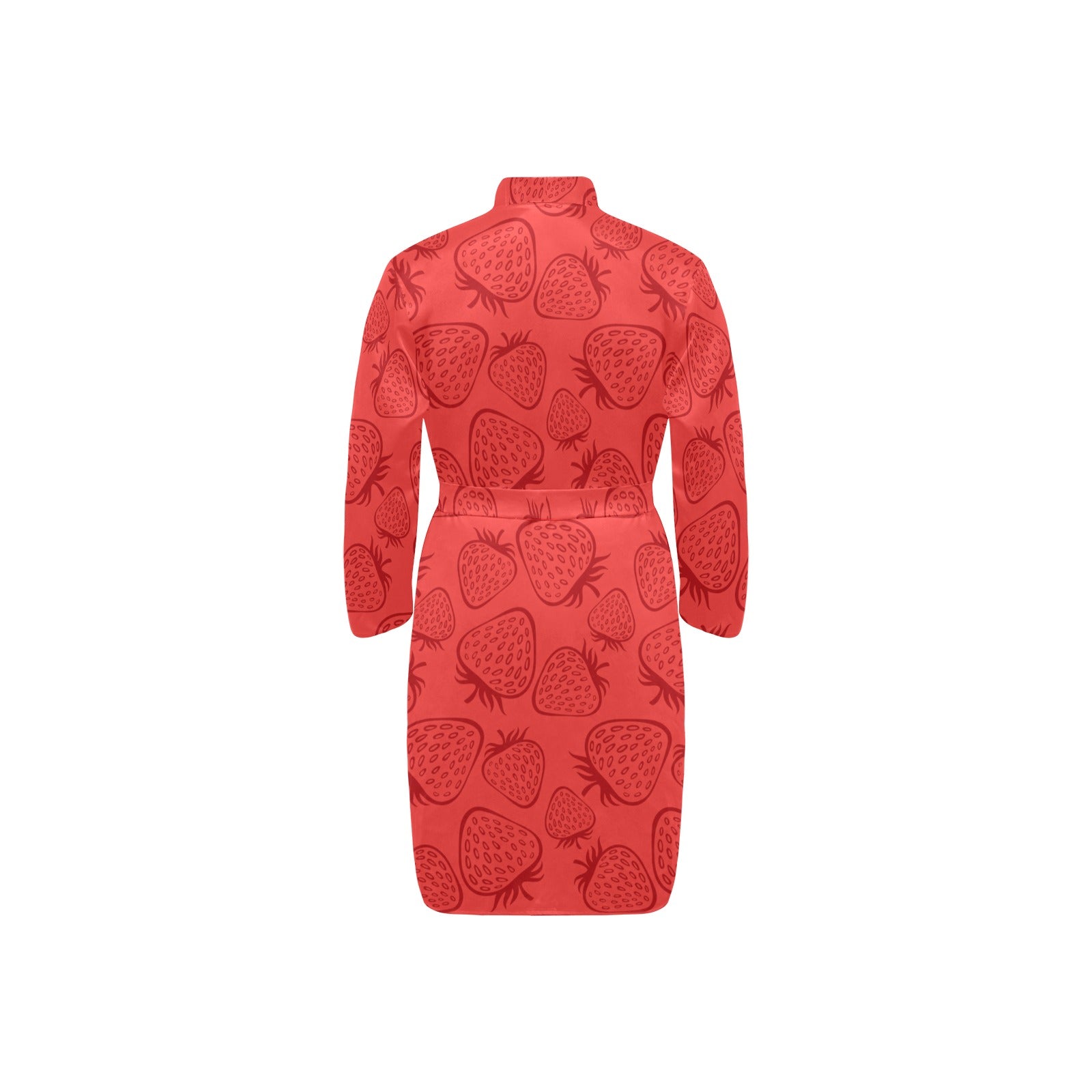strawberry pattern red background Men's Long Sleeve Belted Night Robe