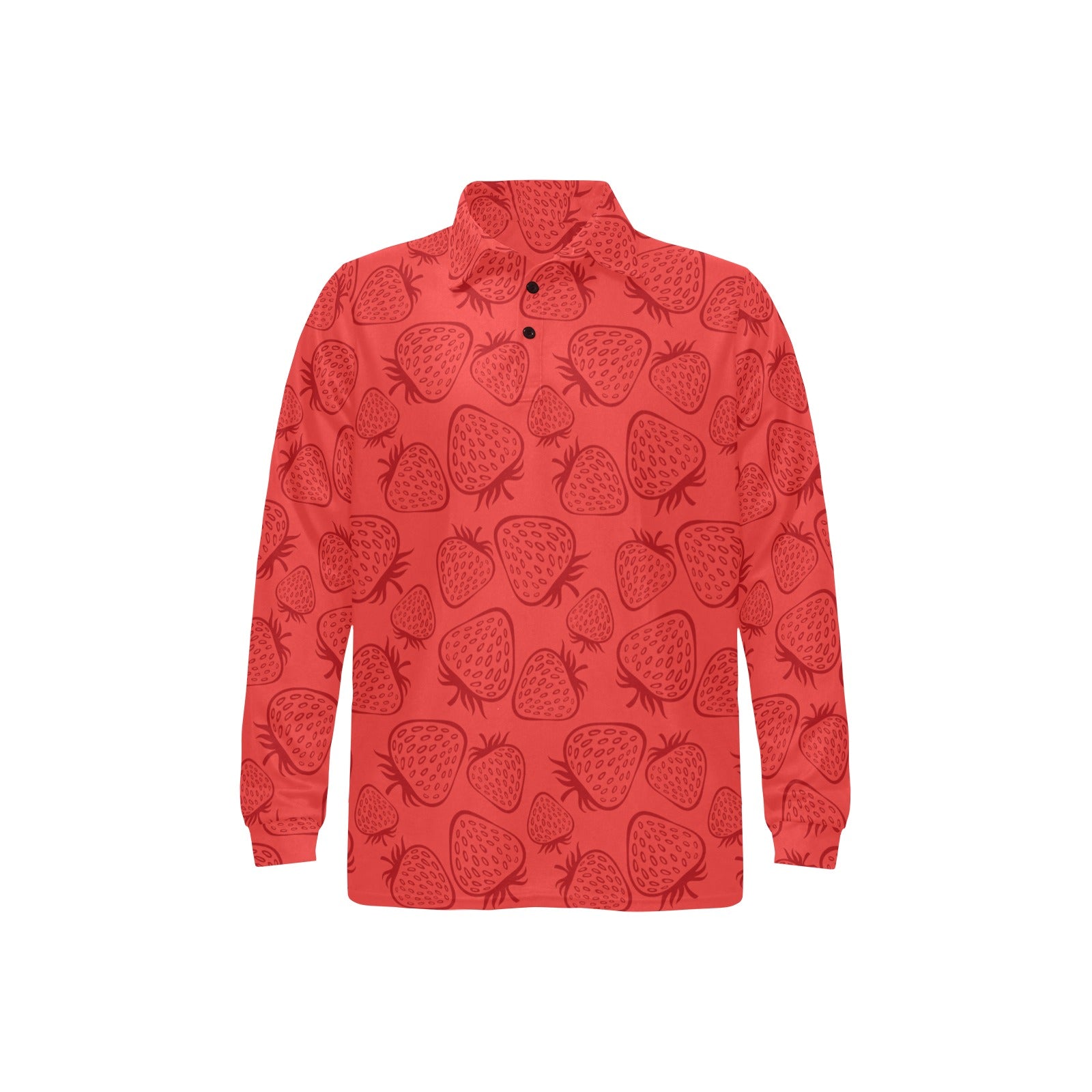 strawberry pattern red background Men's Long Sleeve Polo Shirt