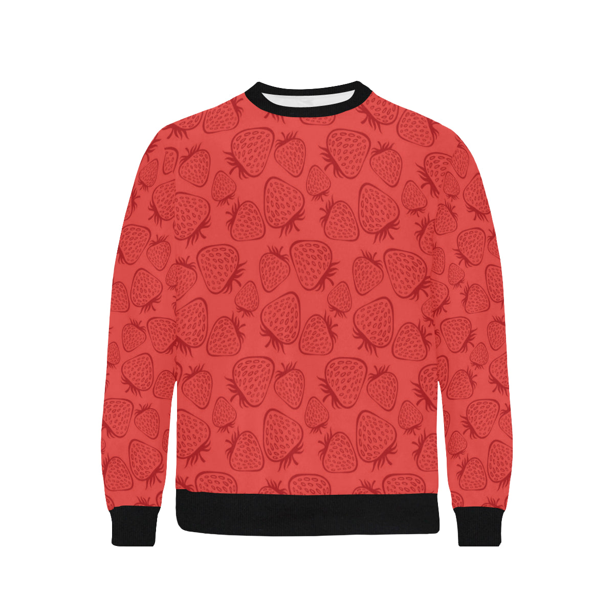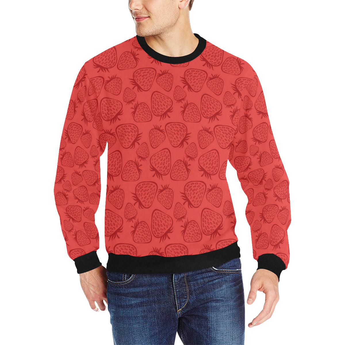 strawberry pattern red background Men's Crew Neck Sweatshirt