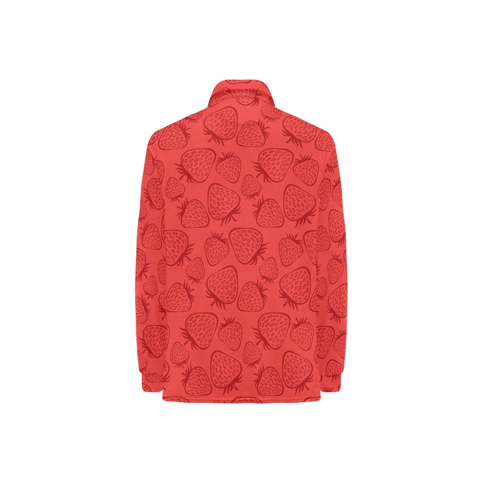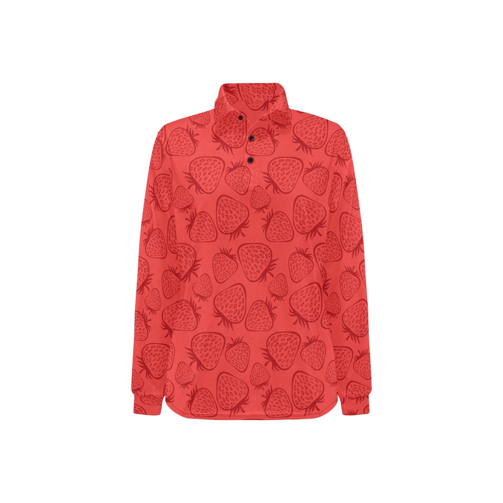 strawberry pattern red background Women's Long Sleeve Polo Shirt