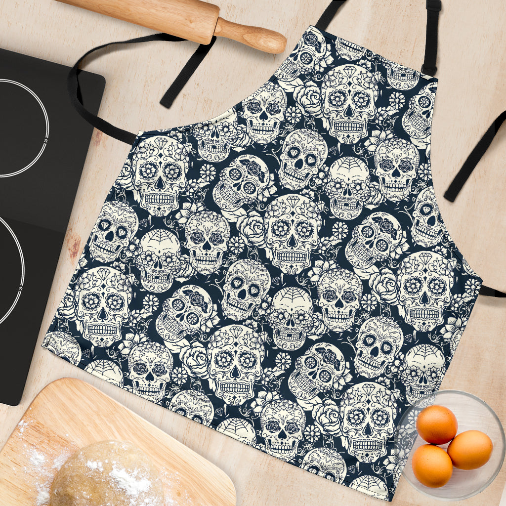 Sugar Skull Black White Pattern Adjustable Apron