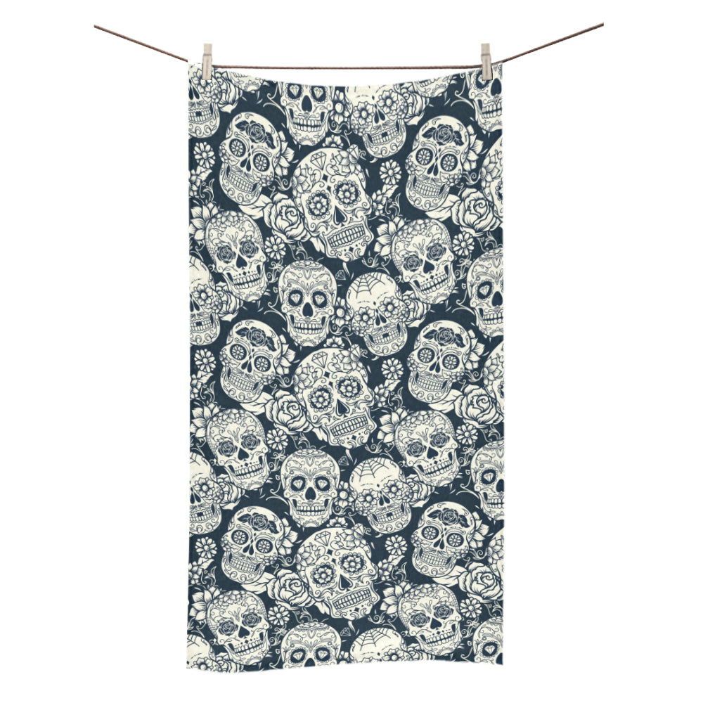 Sugar skull black white pattern Bath Towel 30"x56" is a uniqued design and limited item. It made to order, hand printed, and sewn with love in our factory.