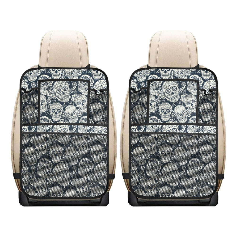 Sugar skull black white pattern Car Seat Back Organizer