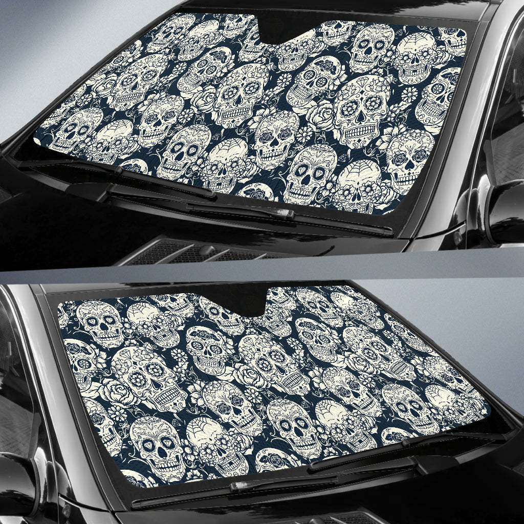 Sugar skull black white pattern Car Sun Shade is a uniqued design and limited item. It made to order, hand printed, and sewn with love in our factory.