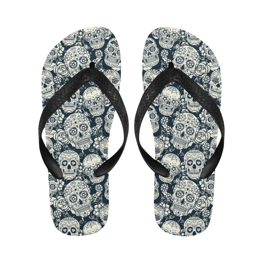Sugar skull black white pattern Unisex Flip Flops is a uniqued design and limited item. It made to order, hand printed, and sewn with love in our factory.