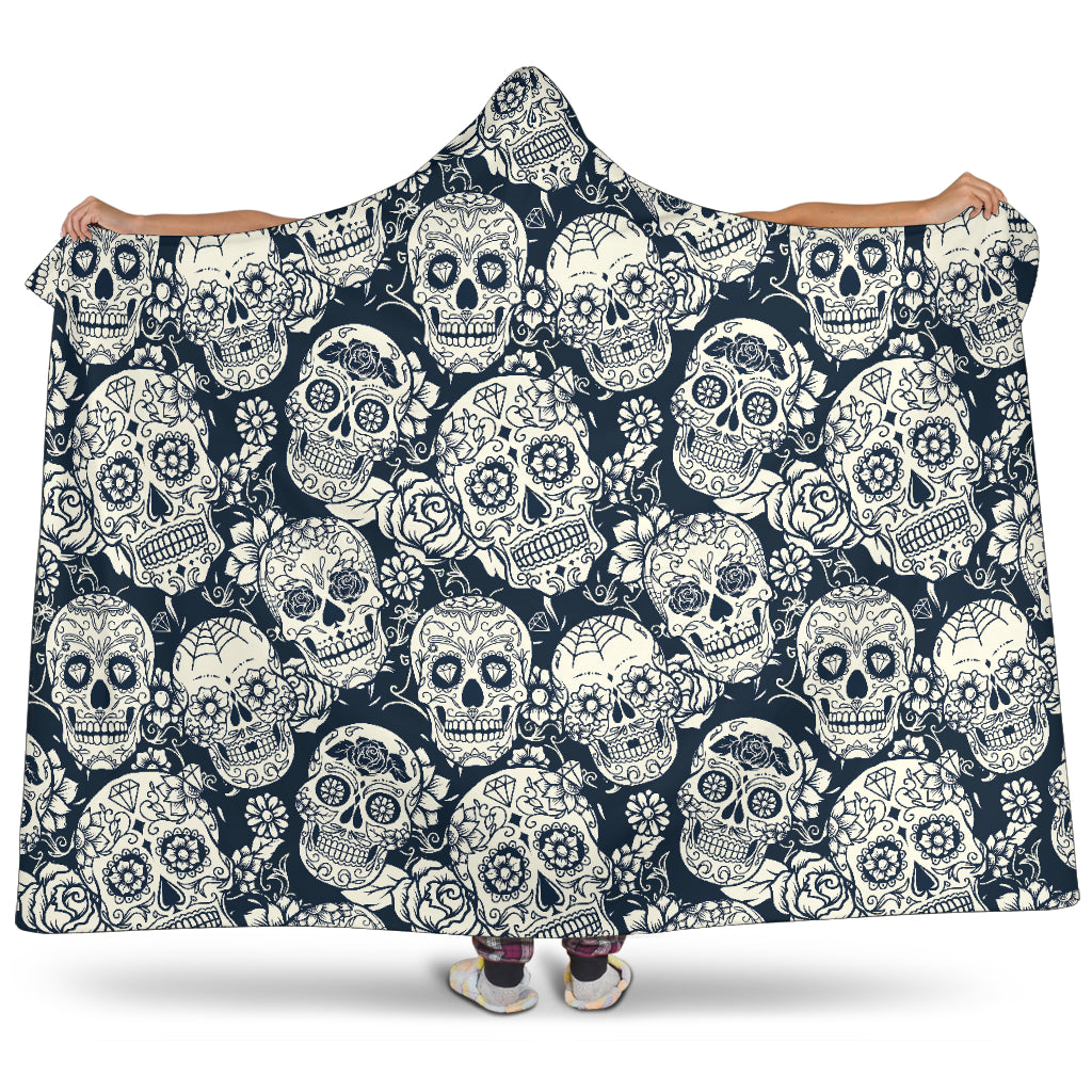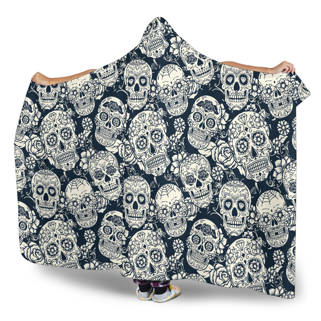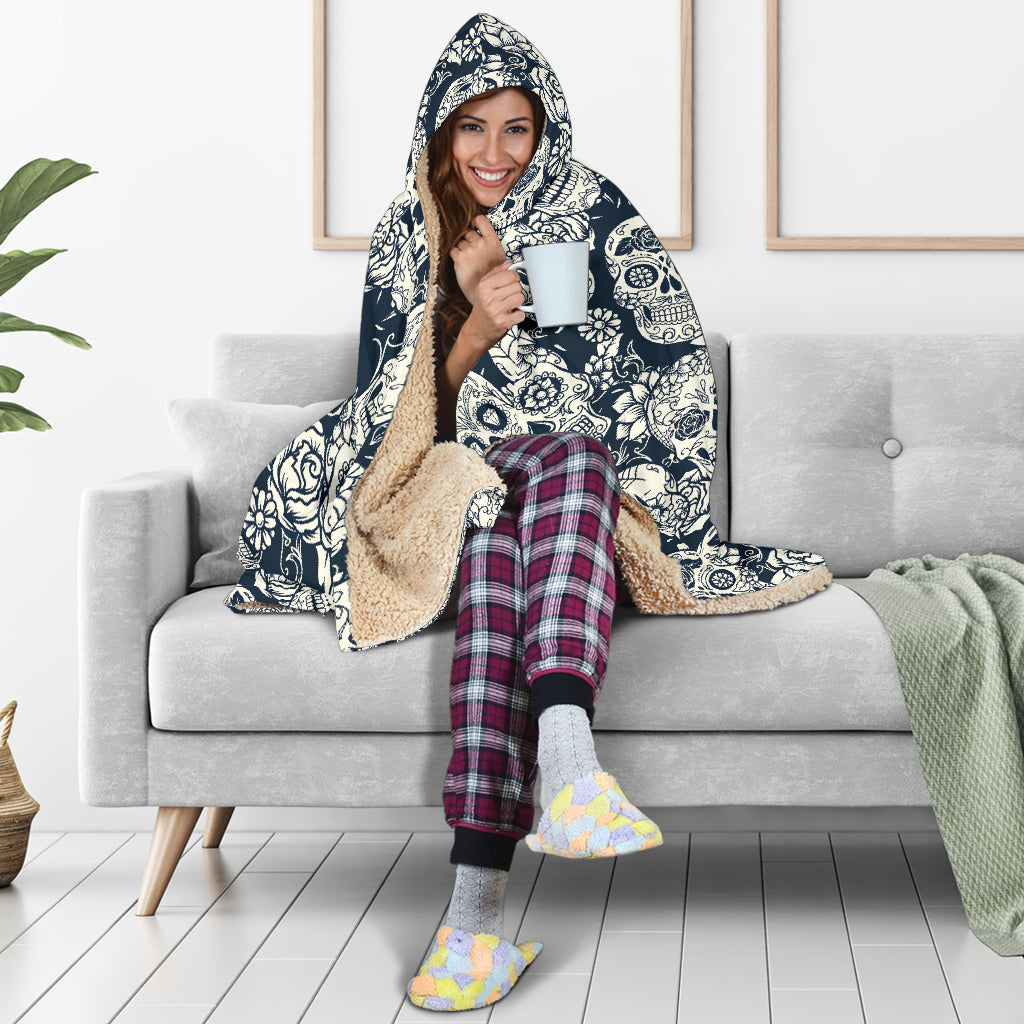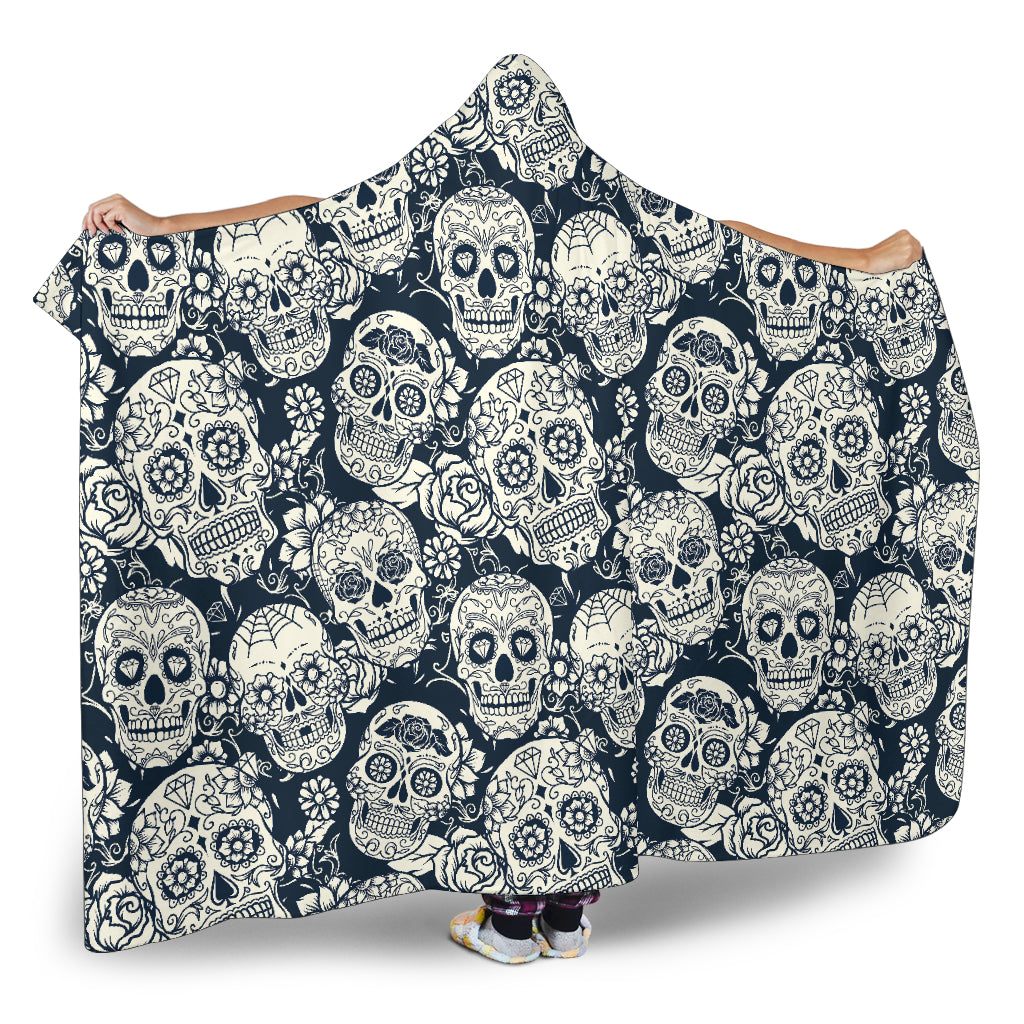 Sugar skull black white pattern Hooded Blanket are custom-made-to-order and handcrafted to the highest quality standards.