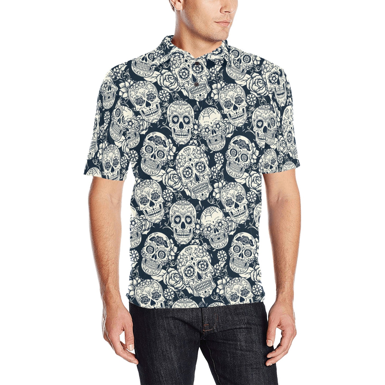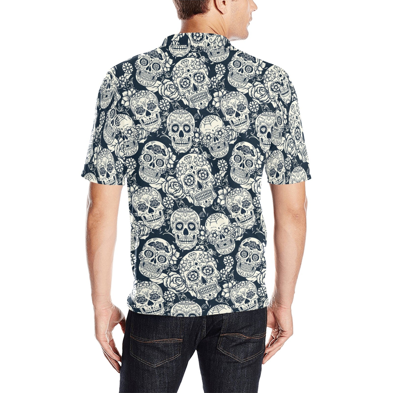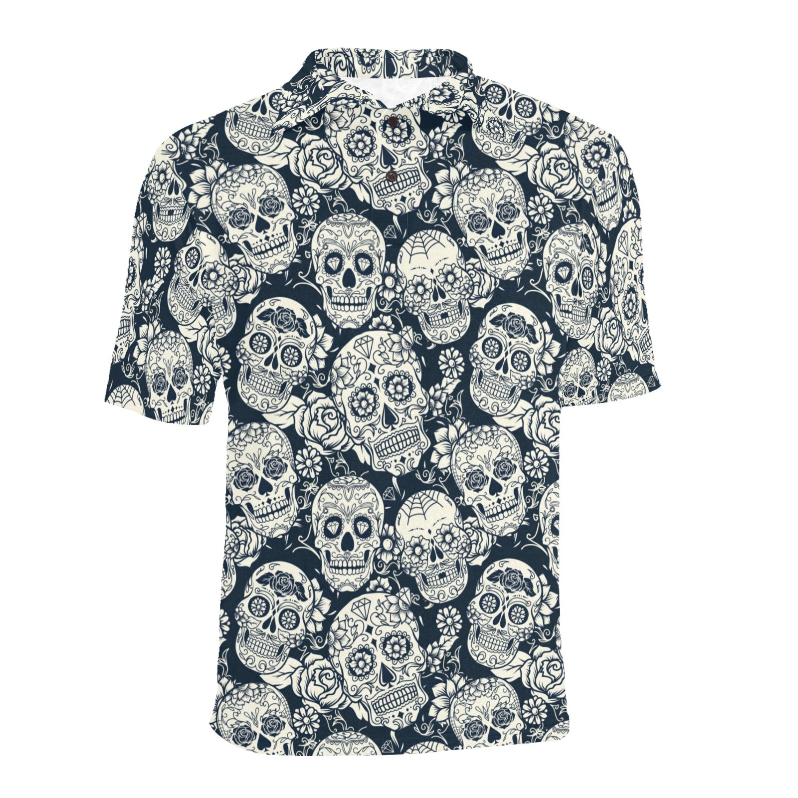 Sugar skull black white pattern Men's All Over Print Polo Shirt