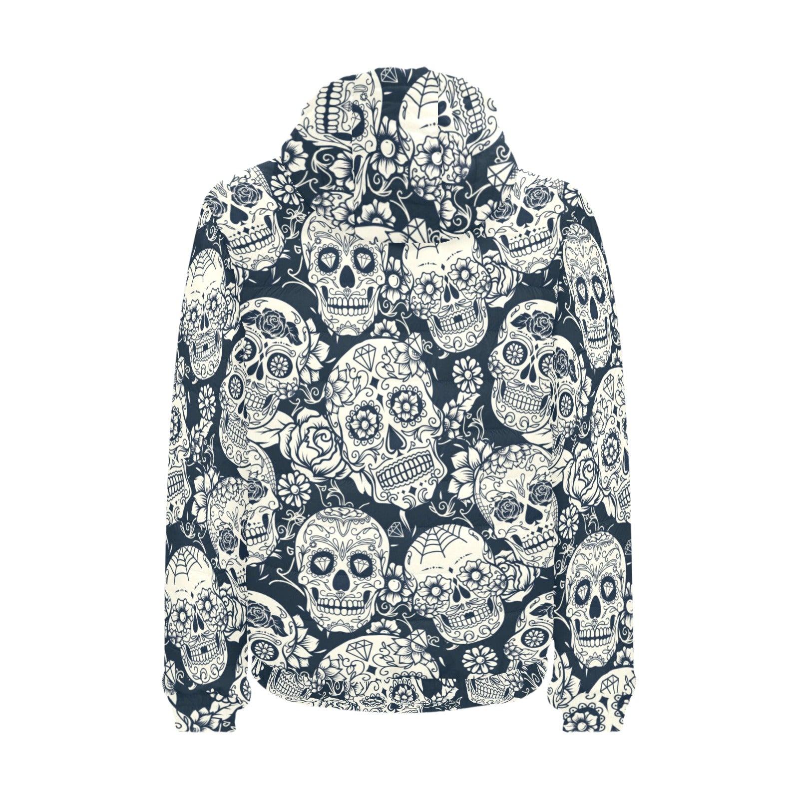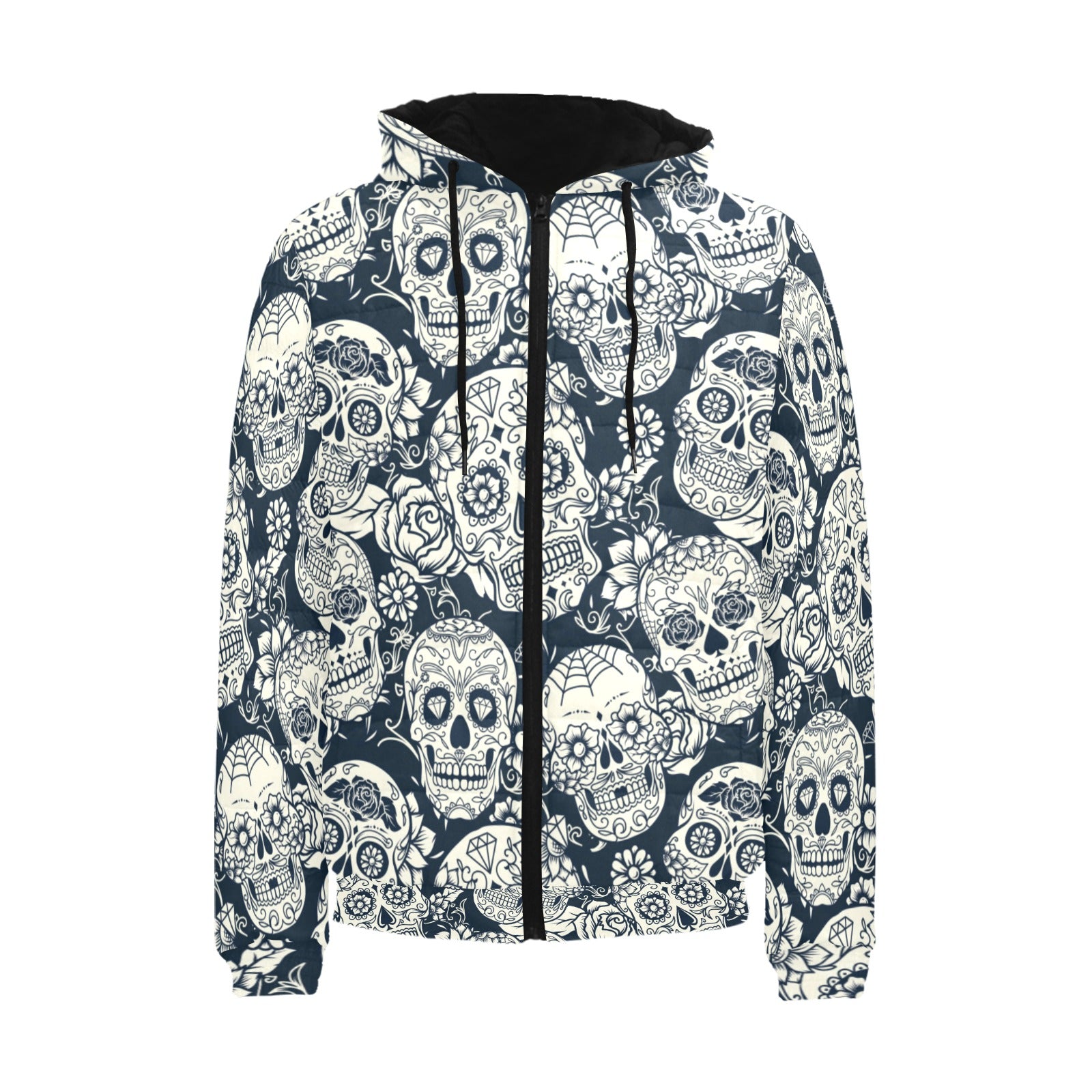 Sugar skull black white pattern Men's Padded Hooded Jacket