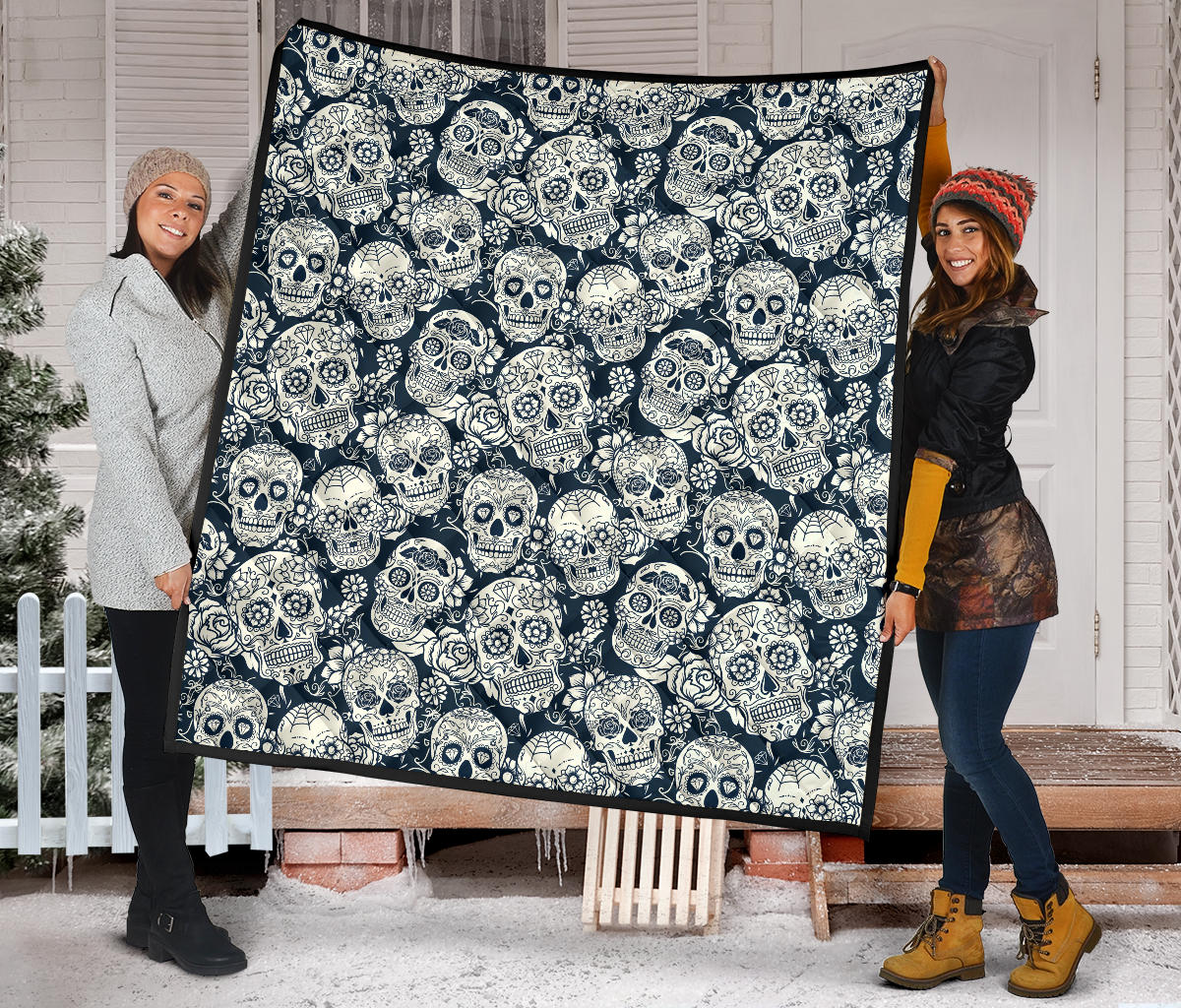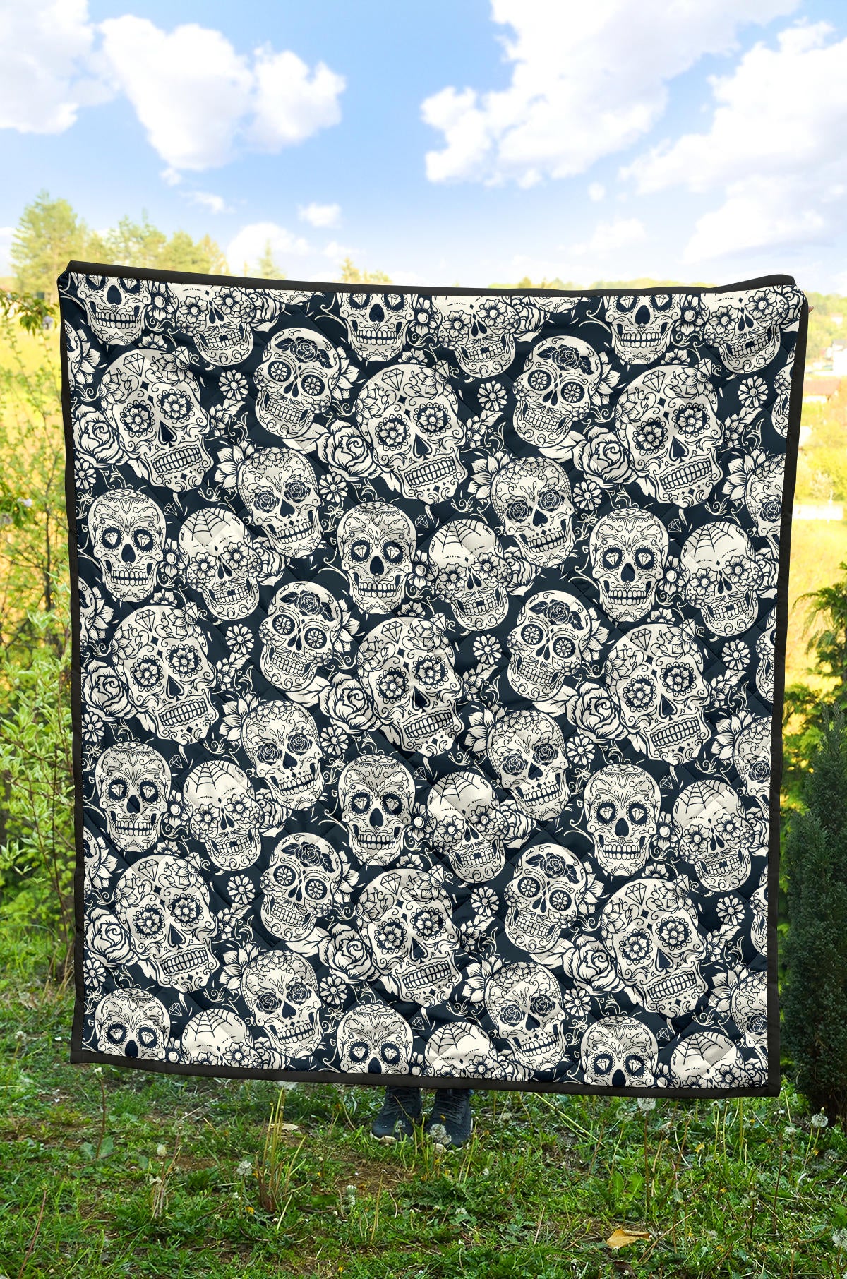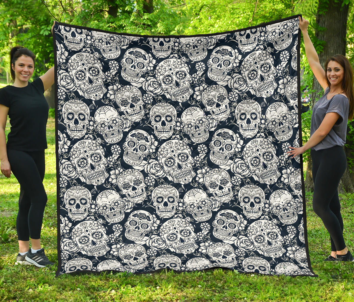 Sugar Skull Black White Pattern Premium Quilt is a uniqued design and limited item. It made to order, hand printed, and sewn with love in our factory.