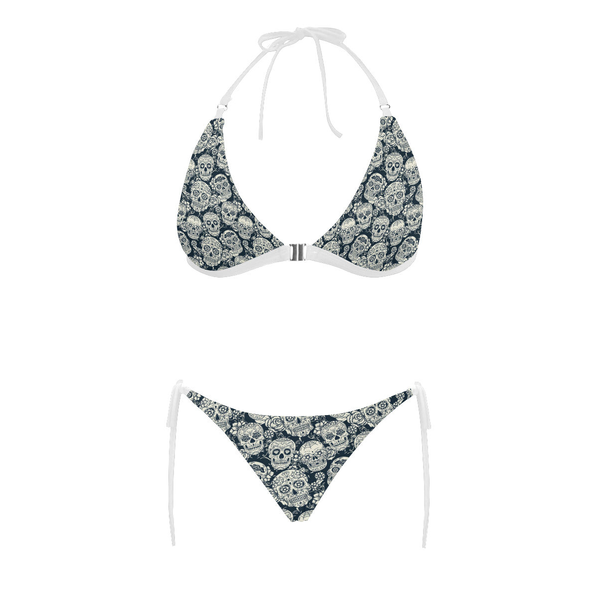 Sugar skull black white pattern Sexy Bikinis Two-Piece Swimsuits are uniqued design and limited item. It made to order, hand printed, and sewn with love in our factory.