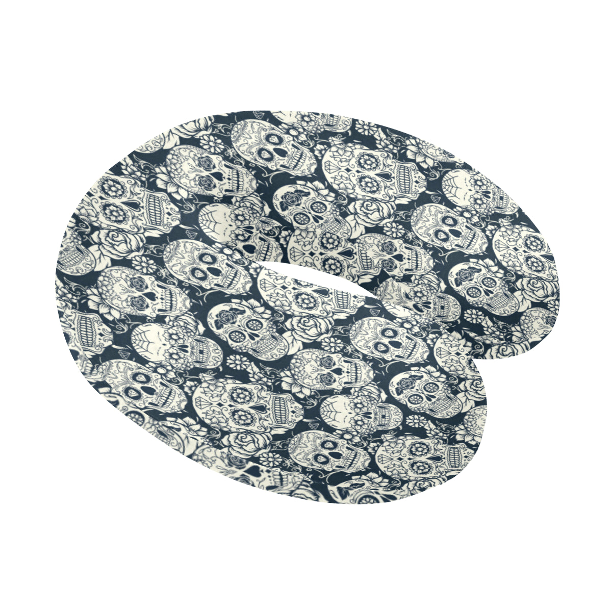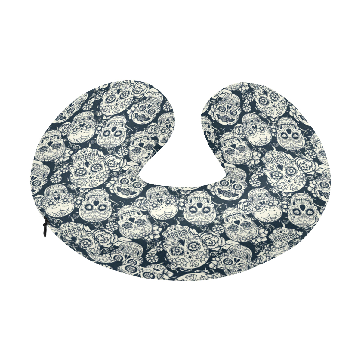 Sugar skull black white pattern U-Shaped Travel Neck Pillow