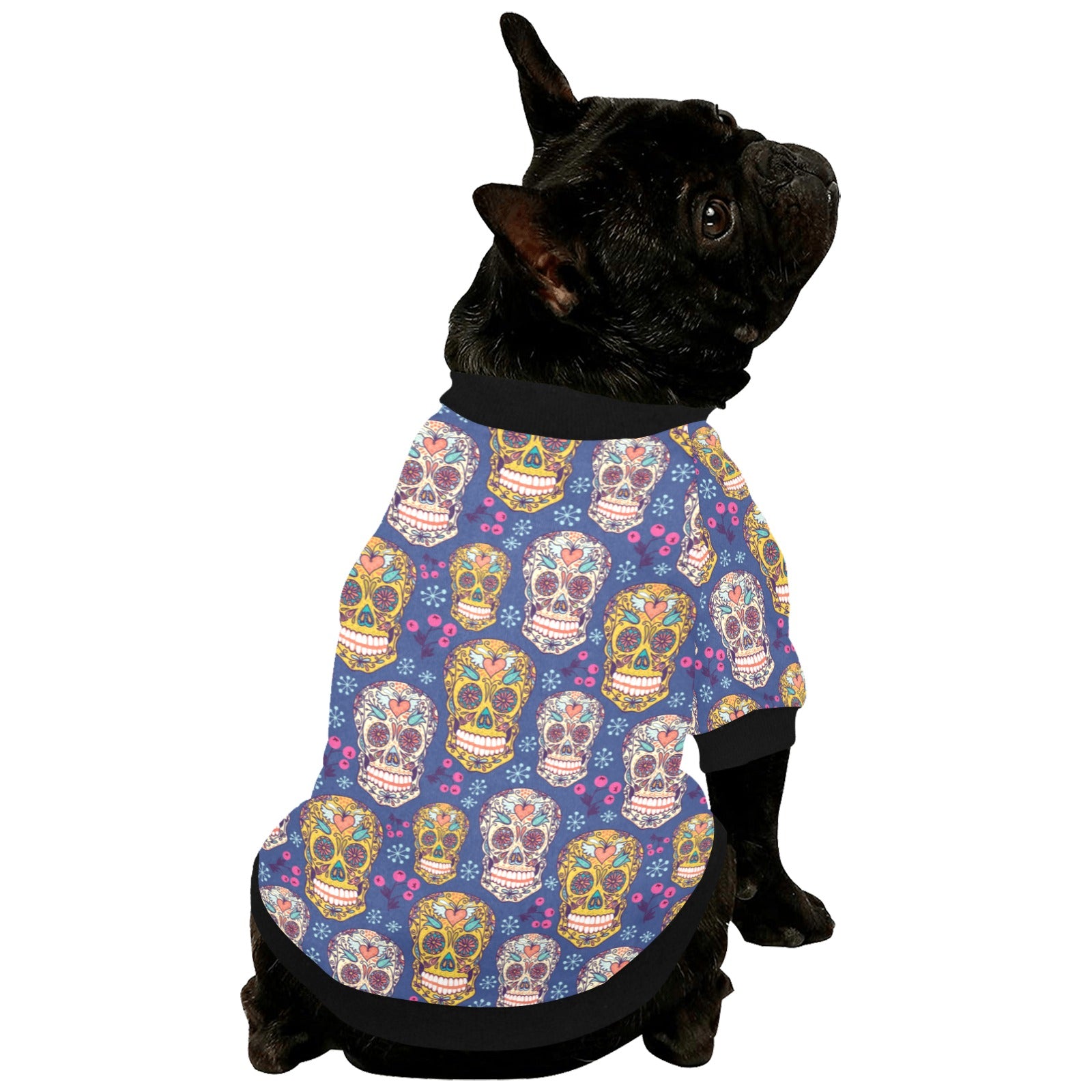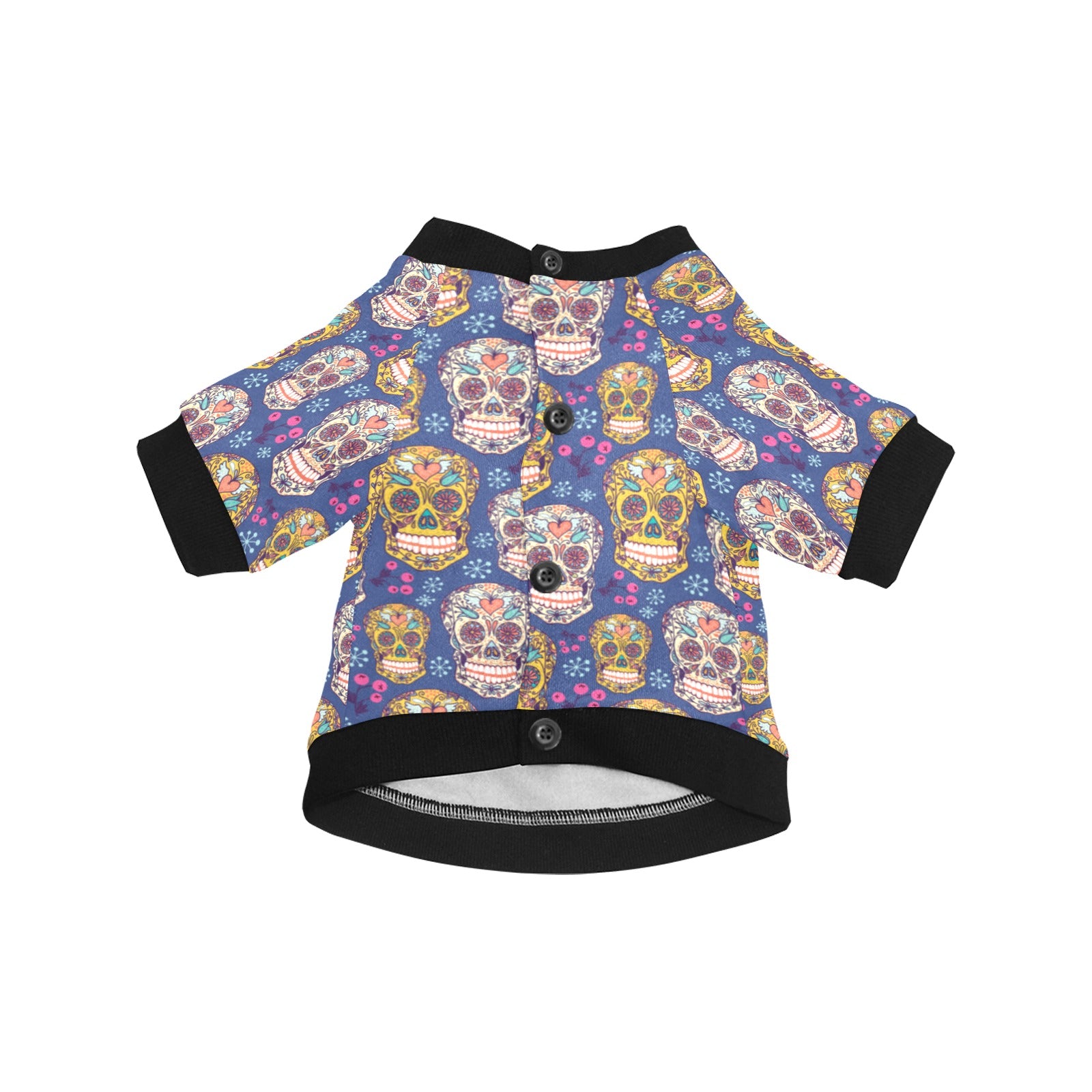 Sugar skull flower pattern All Over Print Pet Dog Round Neck Fuzzy Shirt