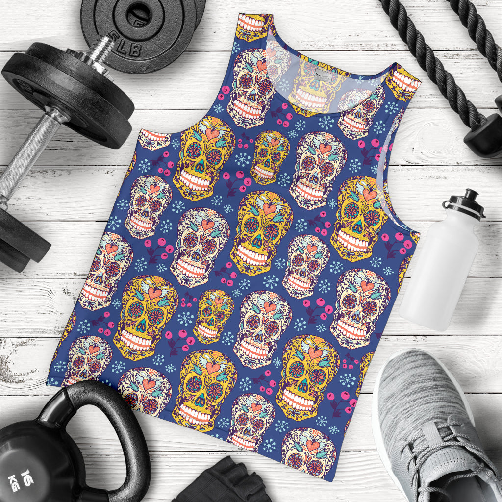 Sugar skull flower pattern Men Tank Top