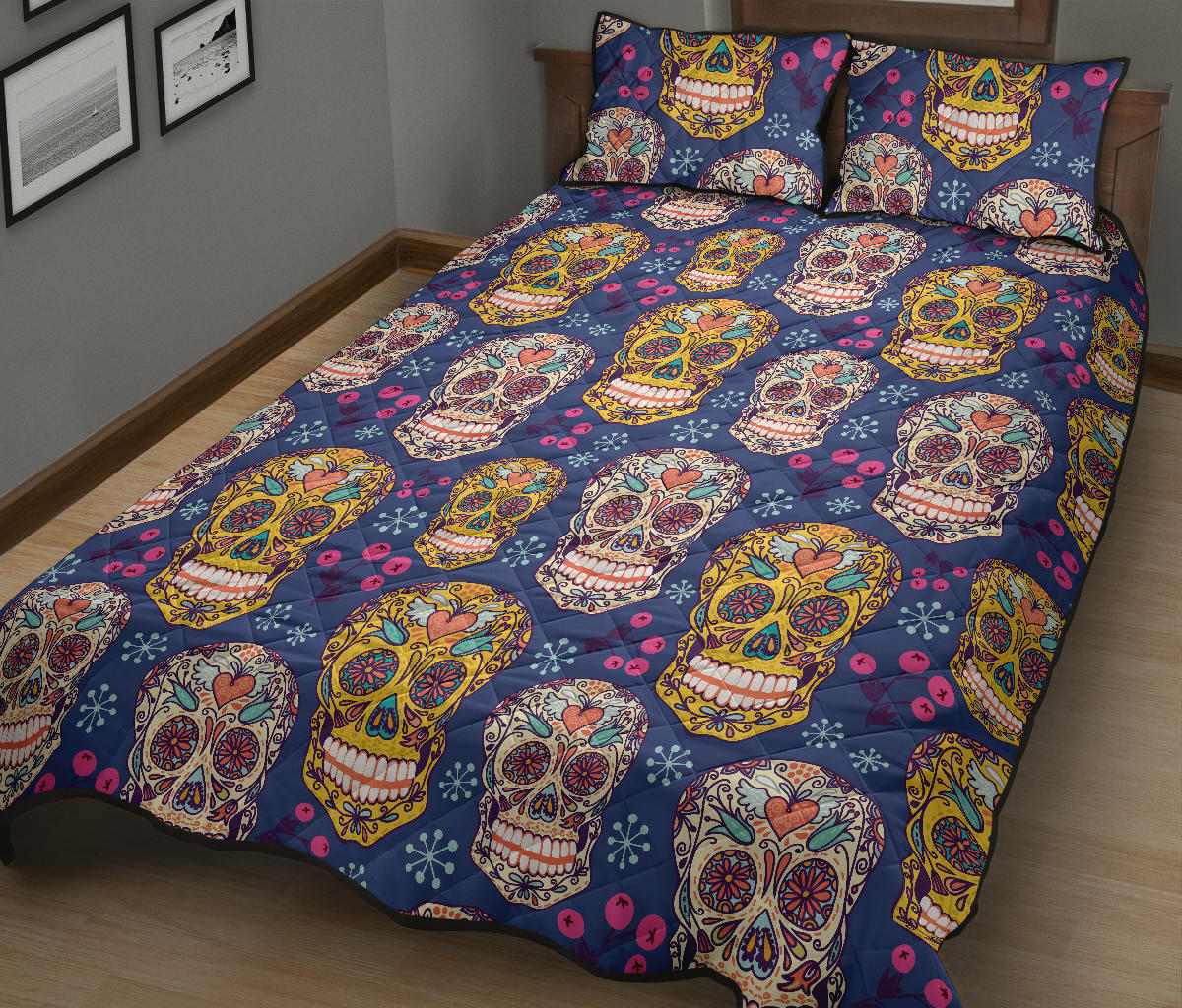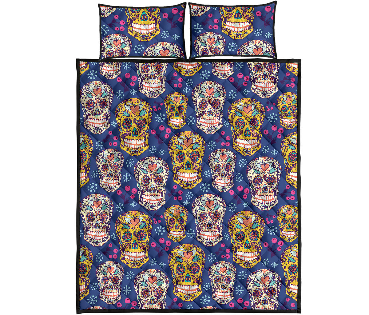 Sugar skull flower pattern Quilt Bed Set