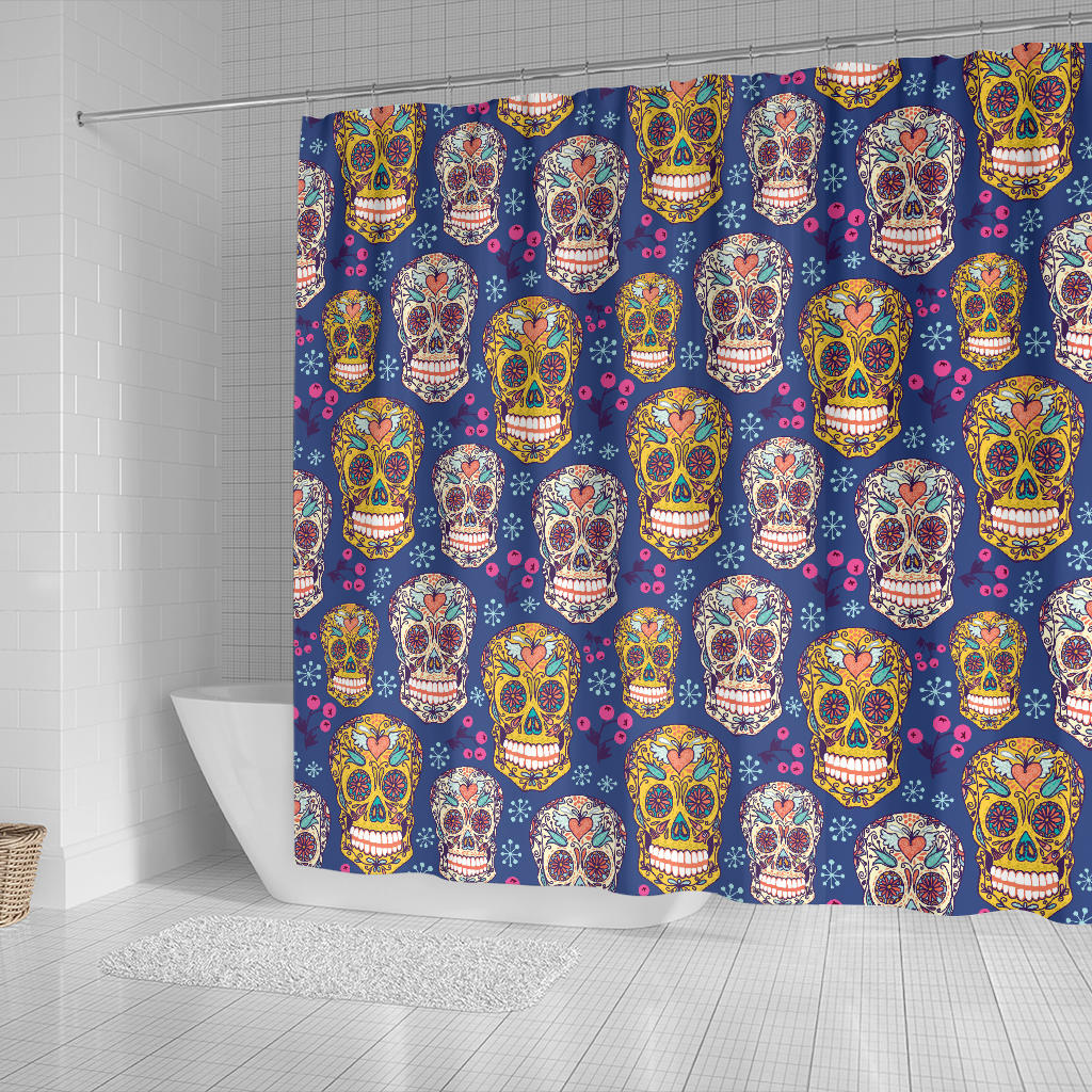 Sugar skull flower pattern Shower Curtain is a uniqued design and limited item. It made to order, hand printed, and sewn with love in our factory.