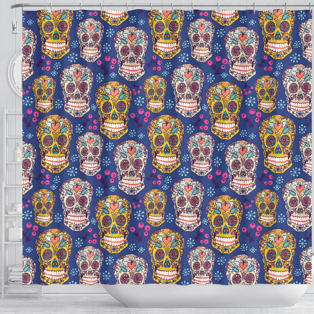 Sugar Skull Flower Pattern Shower Curtain Fulfilled In US