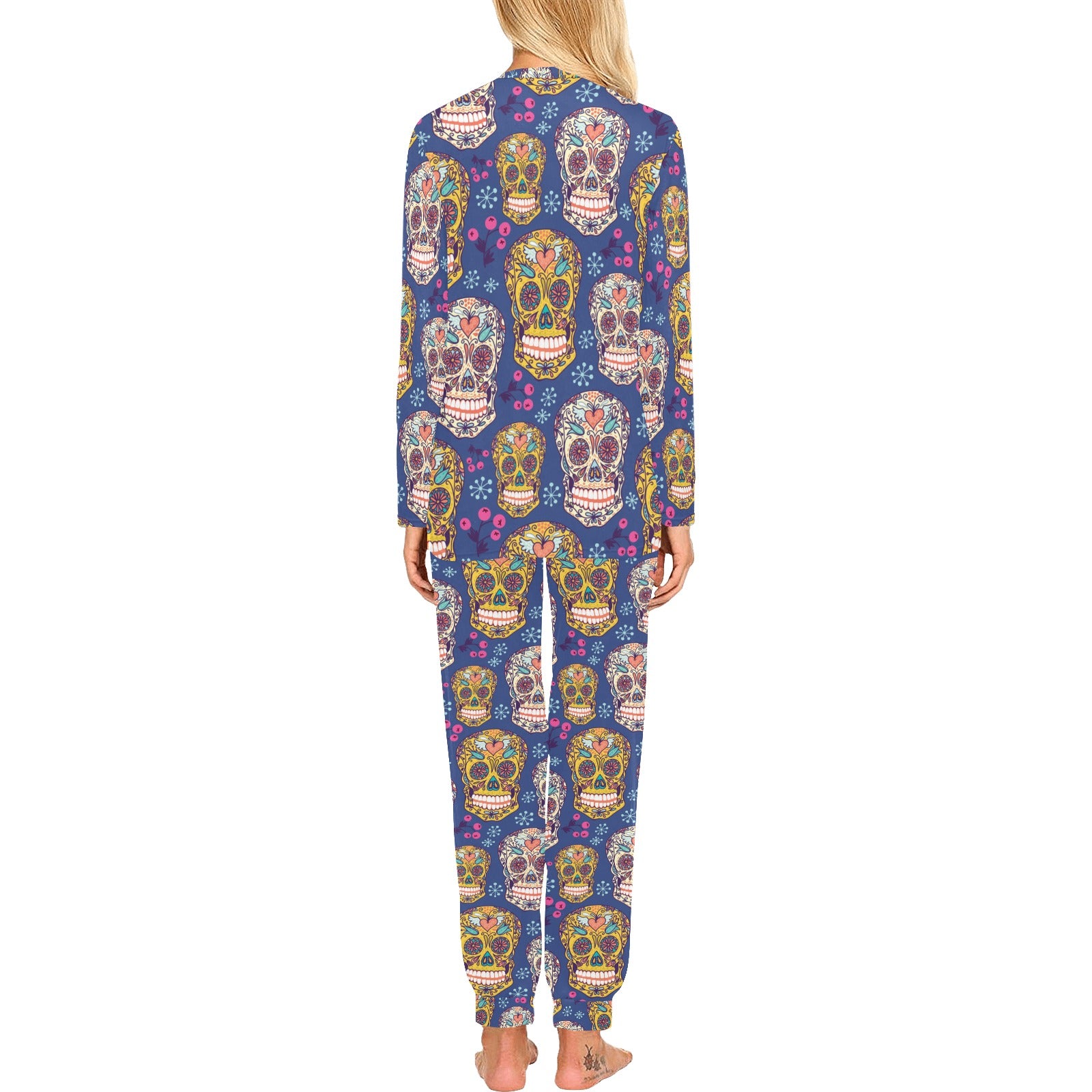 Sugar skull flower pattern Women's All Over Print Pajama Set