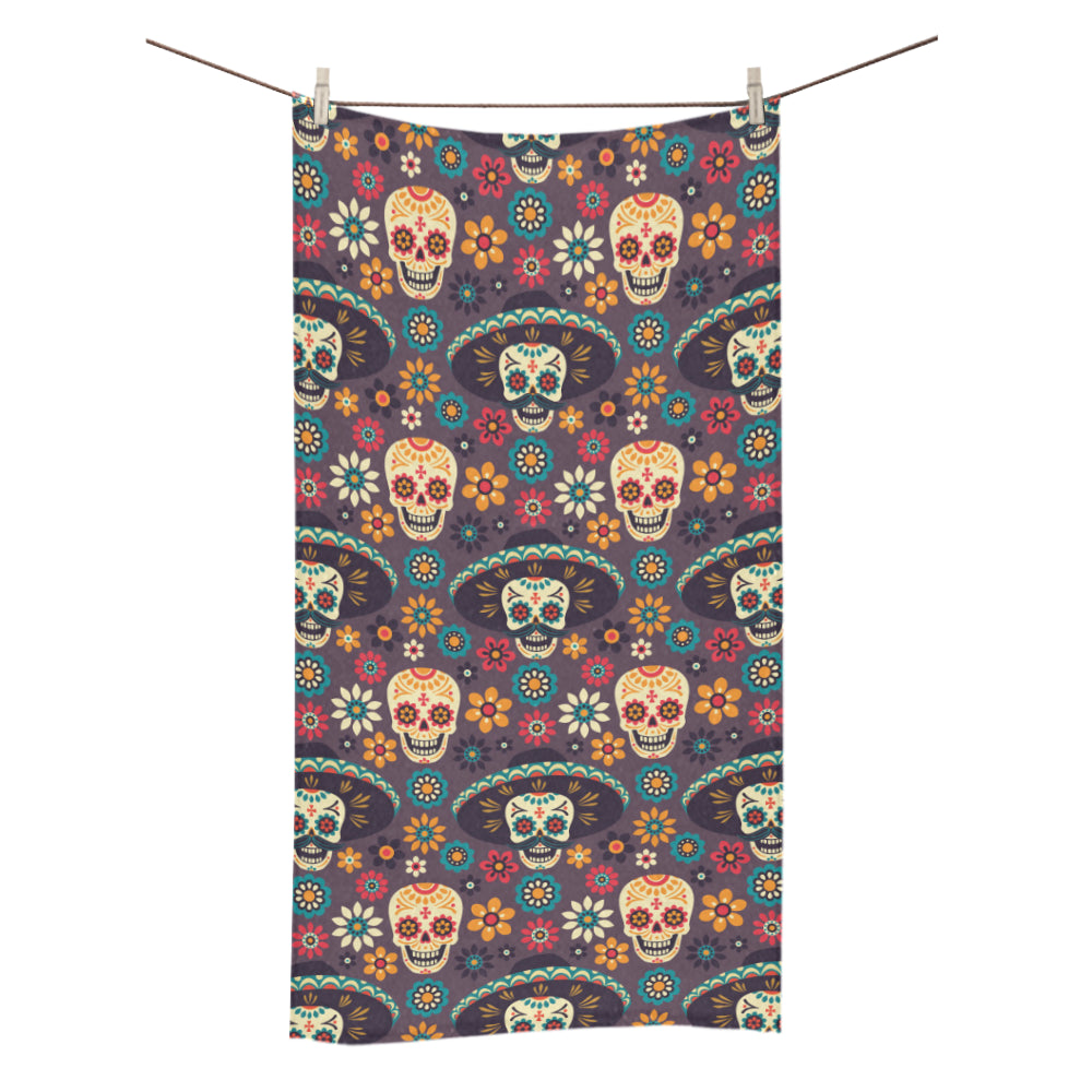 Sugar skulls flower maxican pattern Bath Towel 30"x56" is a uniqued design and limited item. It made to order, hand printed, and sewn with love in our factory.