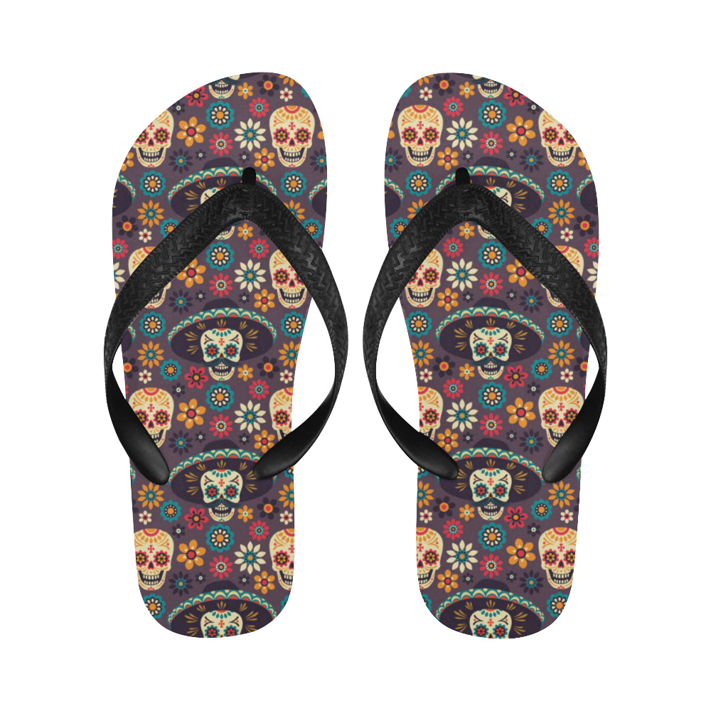 Sugar skulls flower maxican pattern Unisex Flip Flops