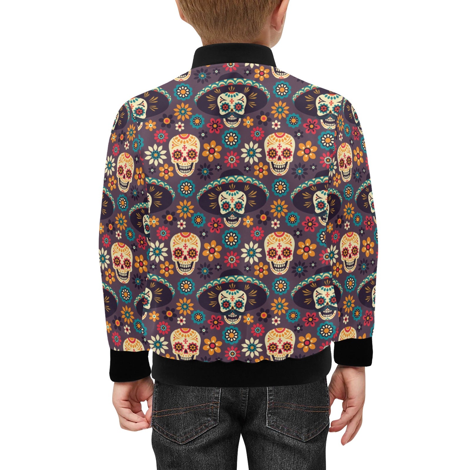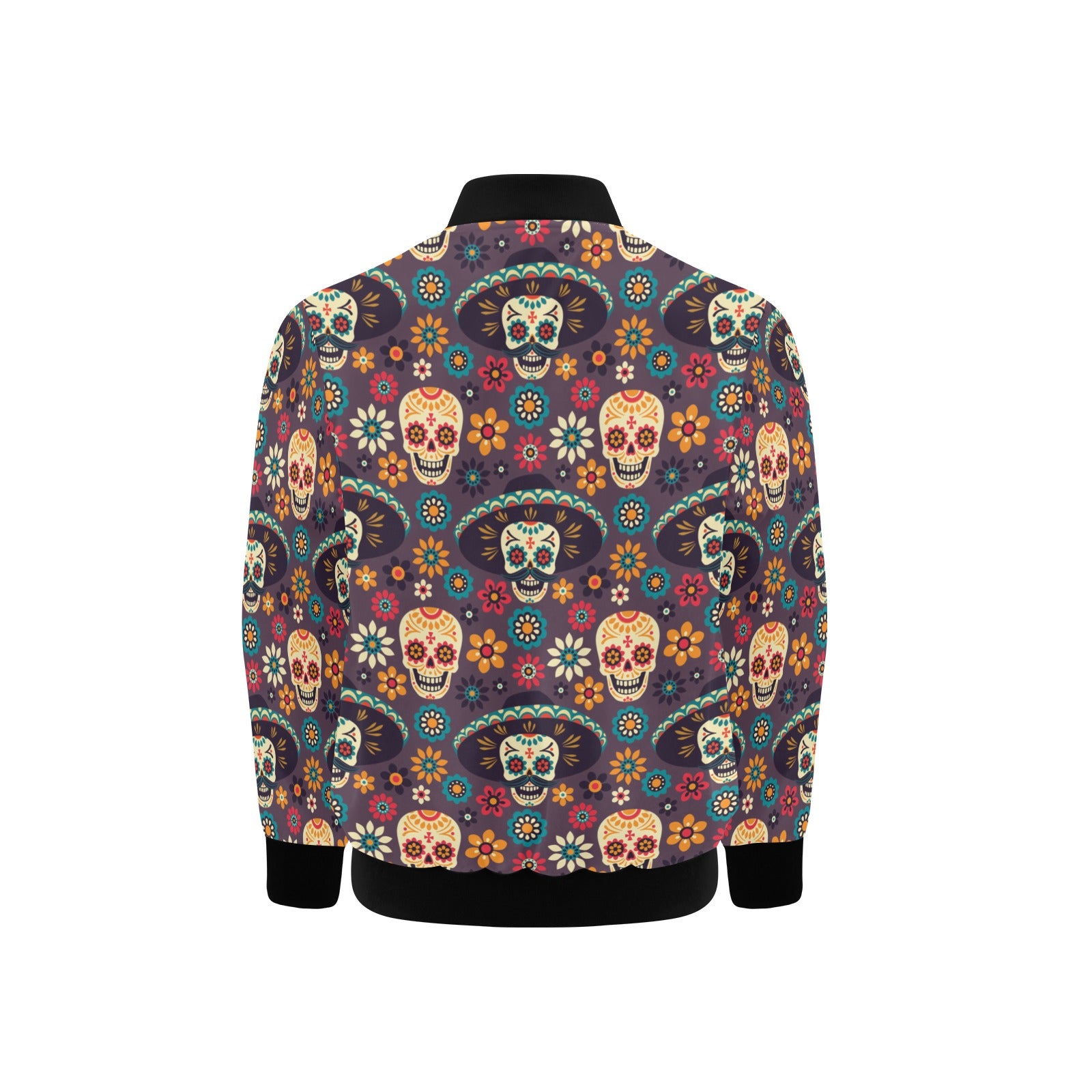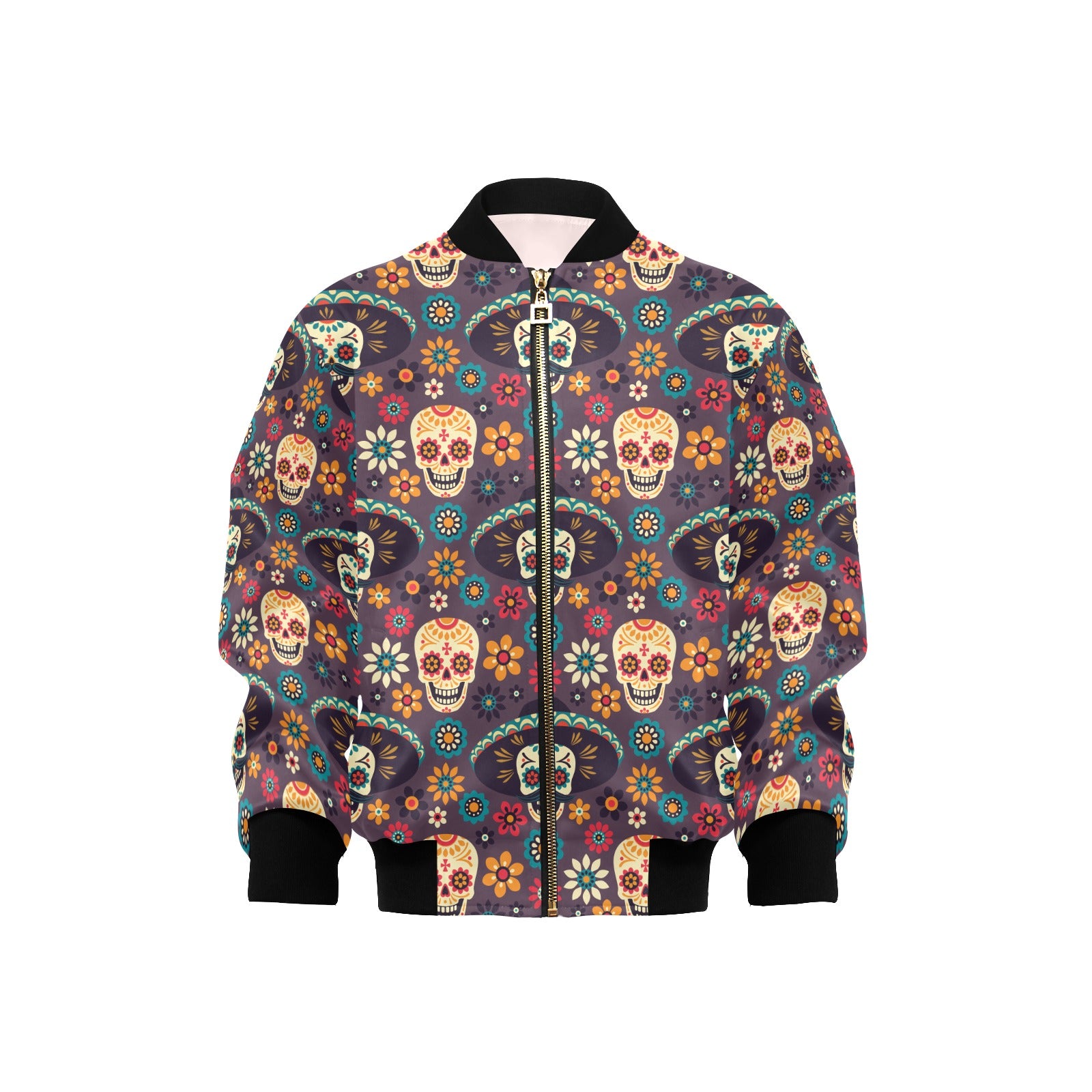 Sugar skulls flower maxican pattern Kids' Boys' Girls' Bomber Jacket