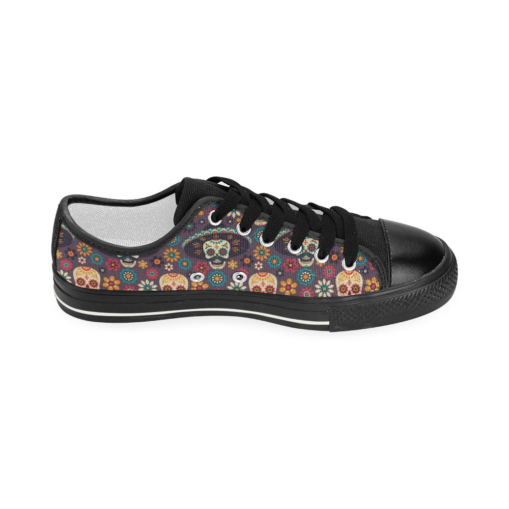 Sugar skulls flower maxican pattern Kids' Boys' Girls' Low Top Canvas Shoes Black