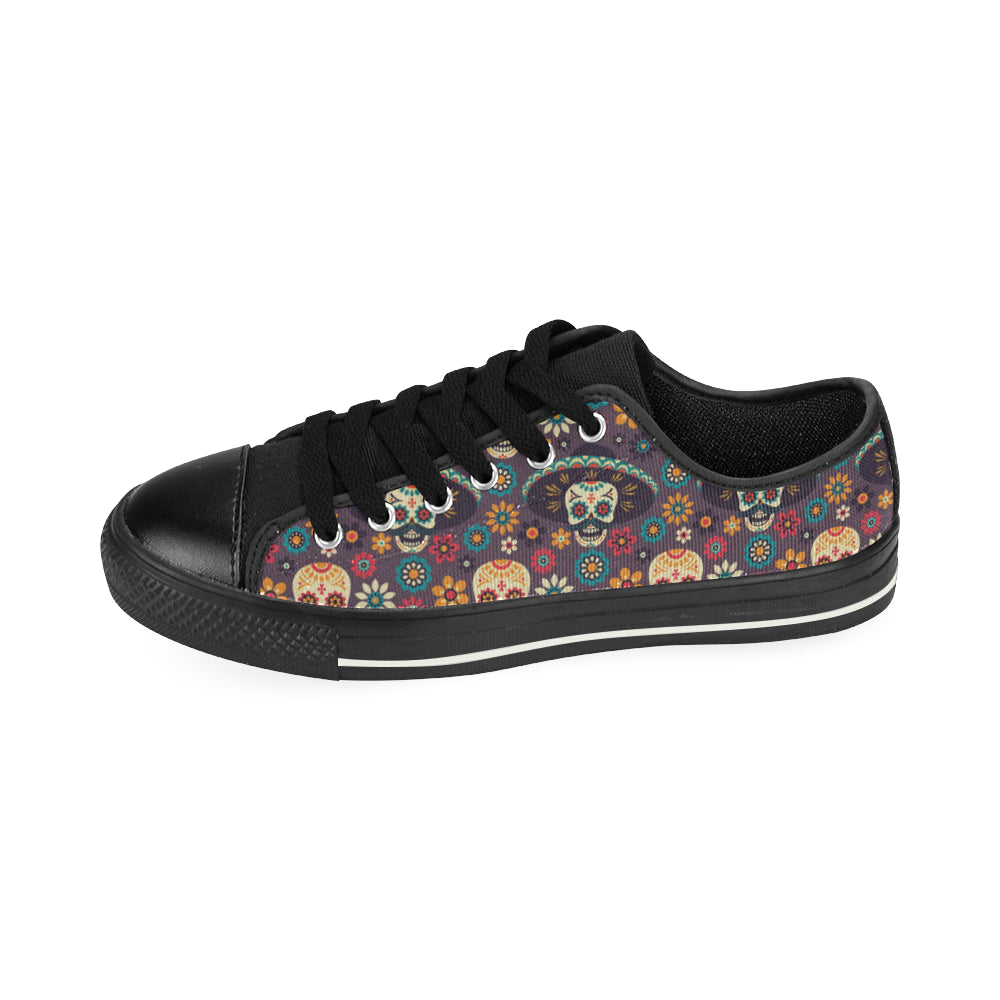 Sugar skulls flower maxican pattern Men's Low Top Canvas Shoes Black