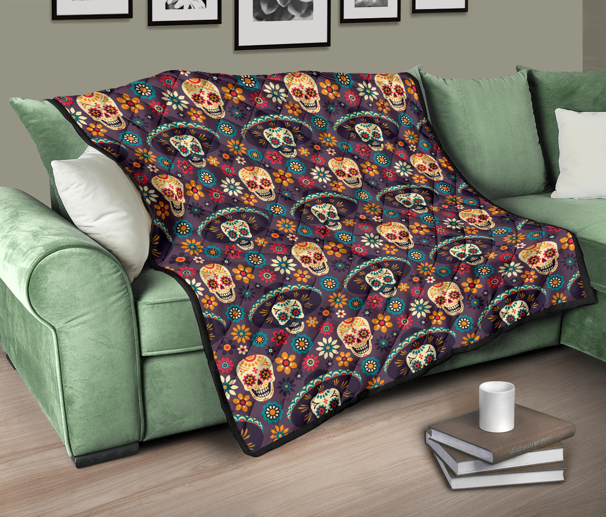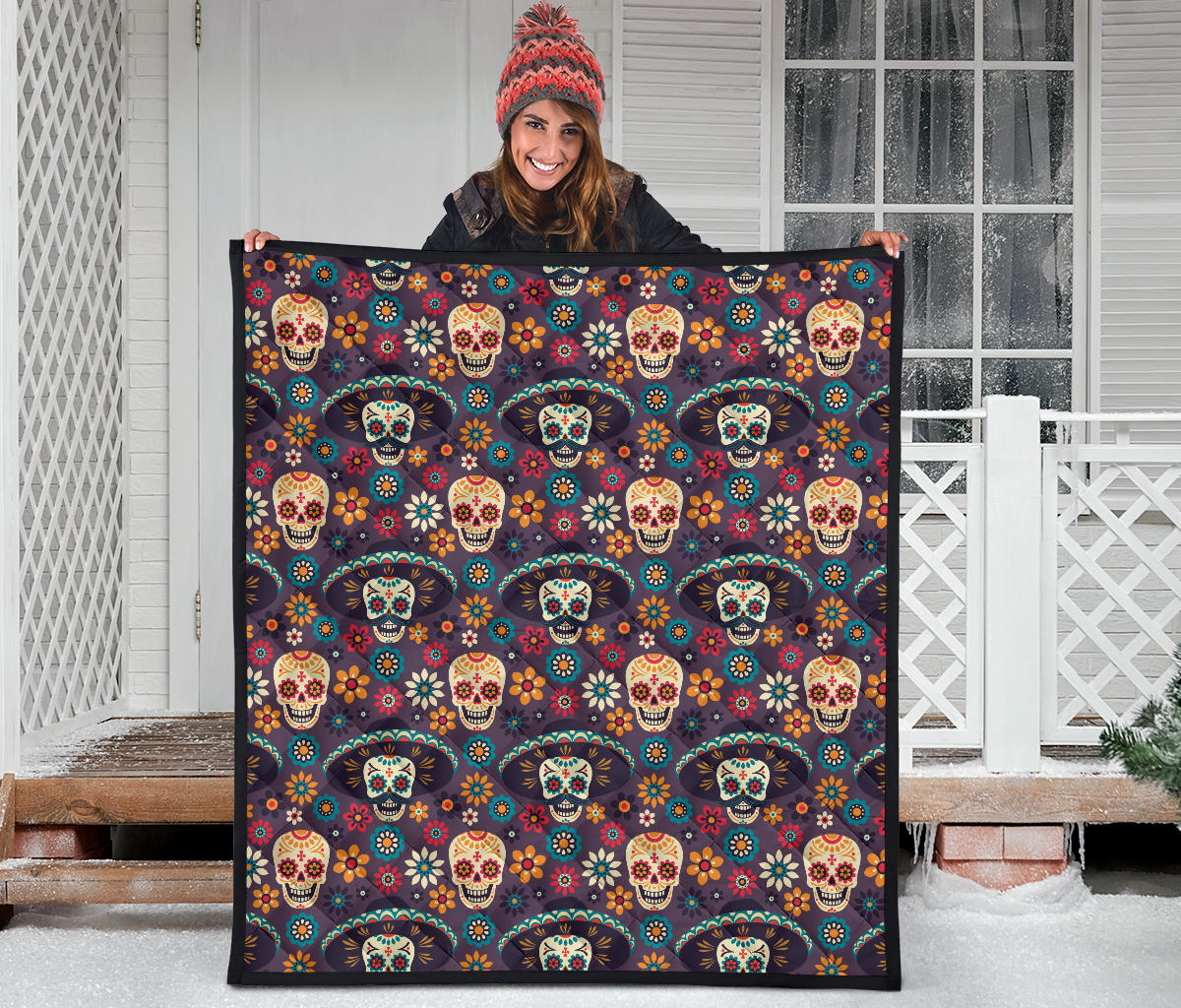 Sugar Skulls Flower Maxican Pattern Premium Quilt is a uniqued design and limited item. It made to order, hand printed, and sewn with love in our factory.