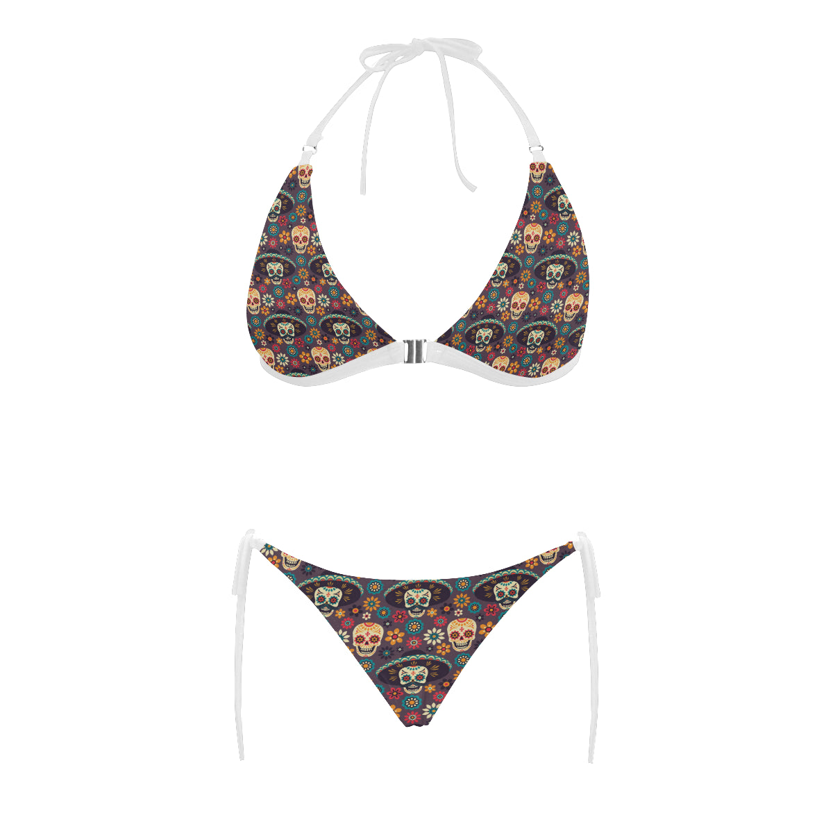 Sugar skulls flower maxican pattern Sexy Bikinis Two-Piece Swimsuits are uniqued design and limited item. It made to order, hand printed, and sewn with love in our factory.
