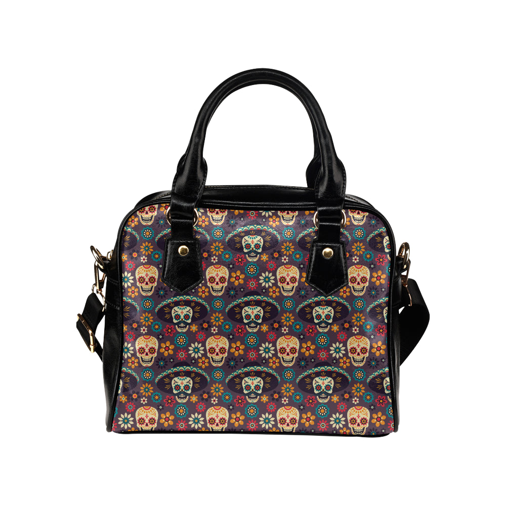 Sugar skulls flower maxican pattern Shoulder Handbag is a uniqued design and limited item. It made to order, hand printed, and sewn with love in our factory.