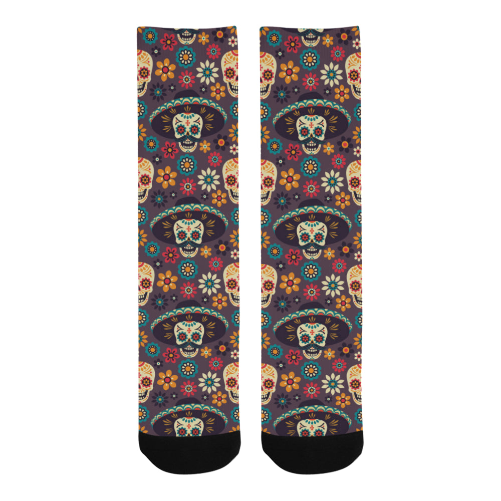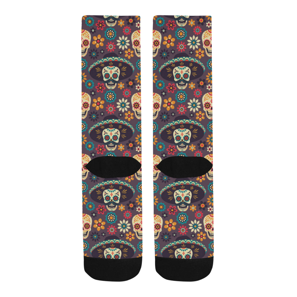 Sugar skulls flower maxican pattern Crew Socks are uniqued design and limited item. It made to order, hand printed, and sewn with love in our factory.