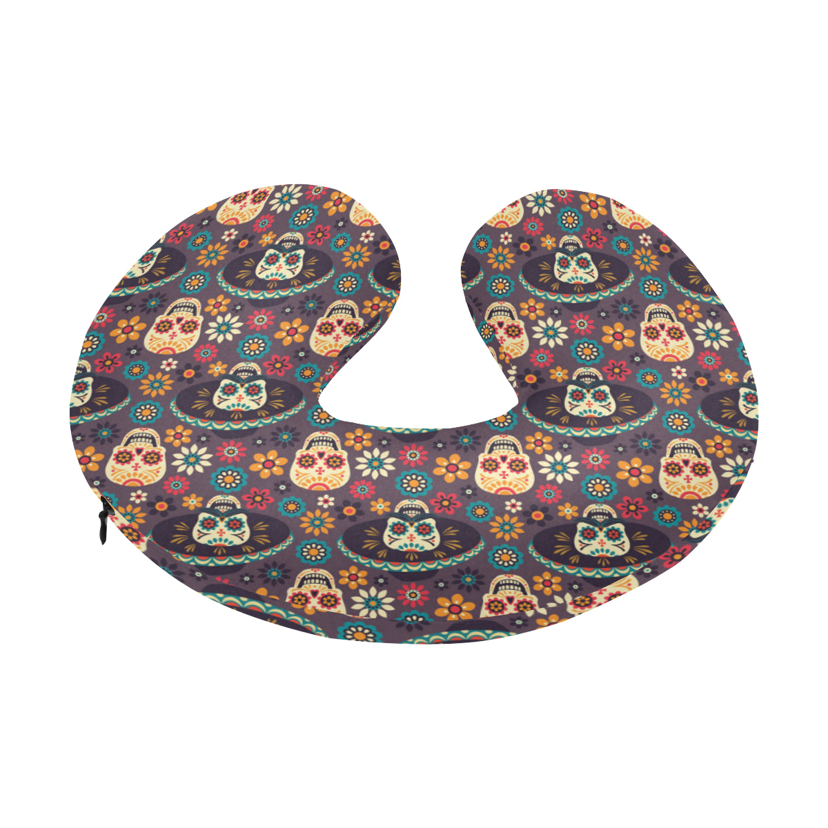 Sugar skulls flower maxican pattern U-Shaped Travel Neck Pillow