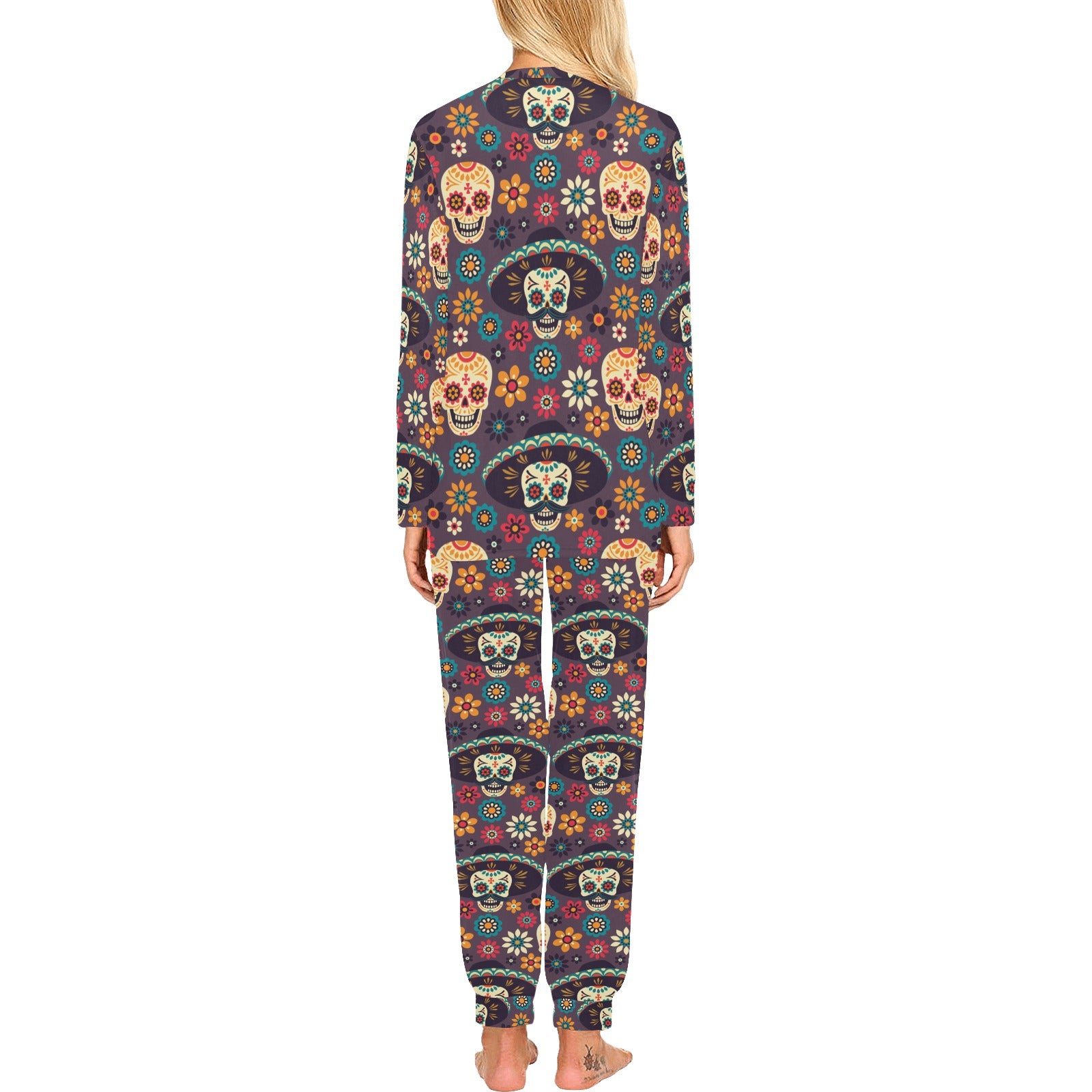 Sugar skulls flower maxican pattern Women's All Over Print Pajama Set