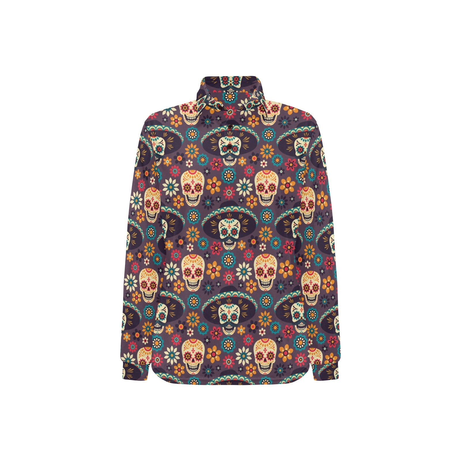Sugar skulls flower maxican pattern Women's Long Sleeve Polo Shirt