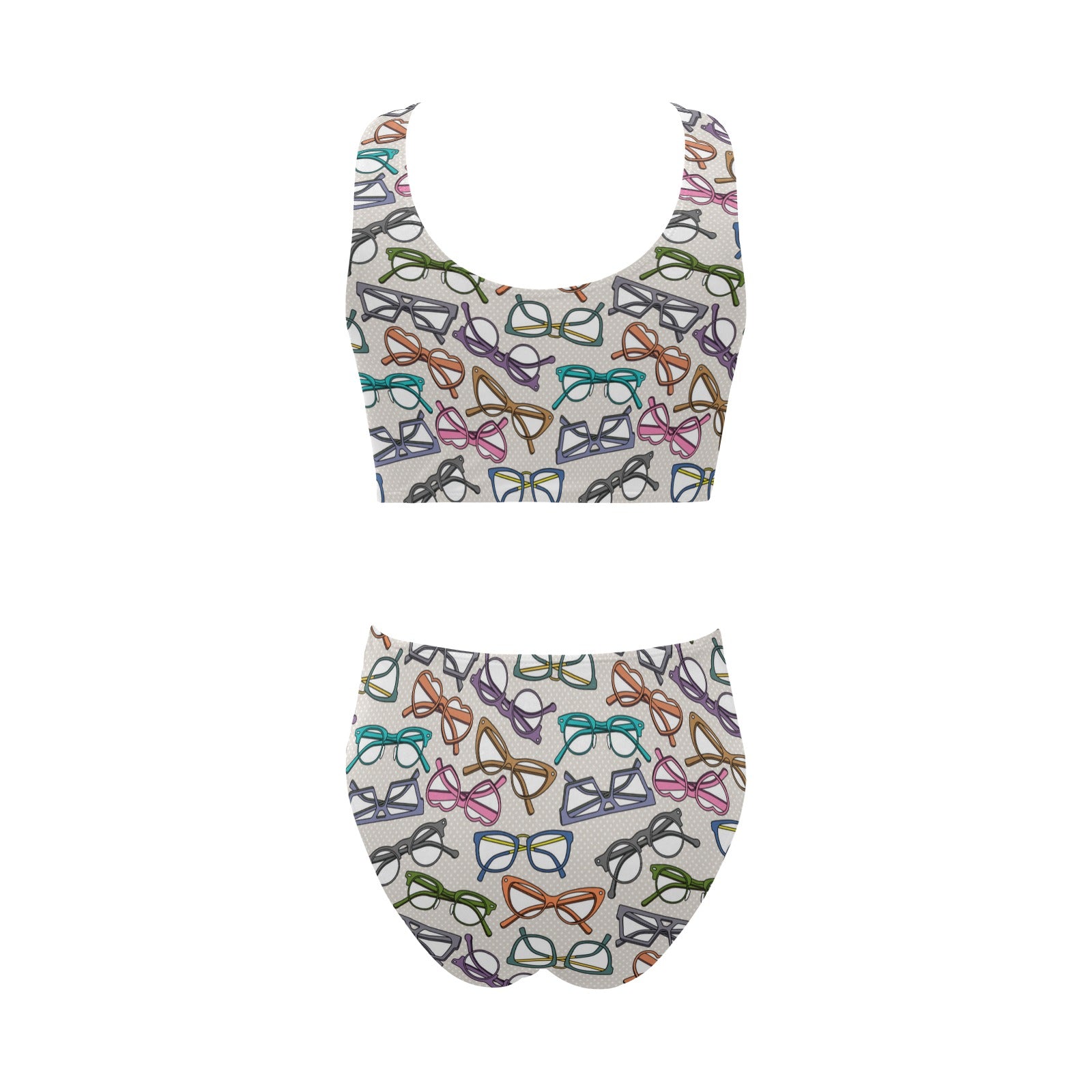 Sun Glasses Pattern Print Design 01 Chest Bowknot High Waisted Bikini Swimsuit