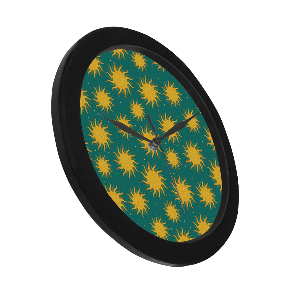Sun green background Elegant Black Wall Clock is a uniqued design and limited item. It made to order, hand printed, and sewn with love in our factory.