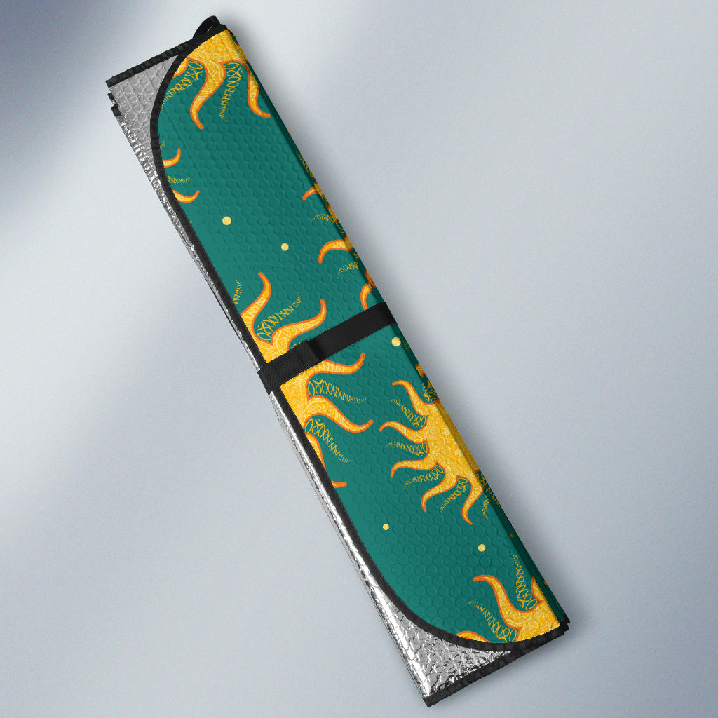 Sun green background Car Sun Shade is a uniqued design and limited item. It made to order, hand printed, and sewn with love in our factory.