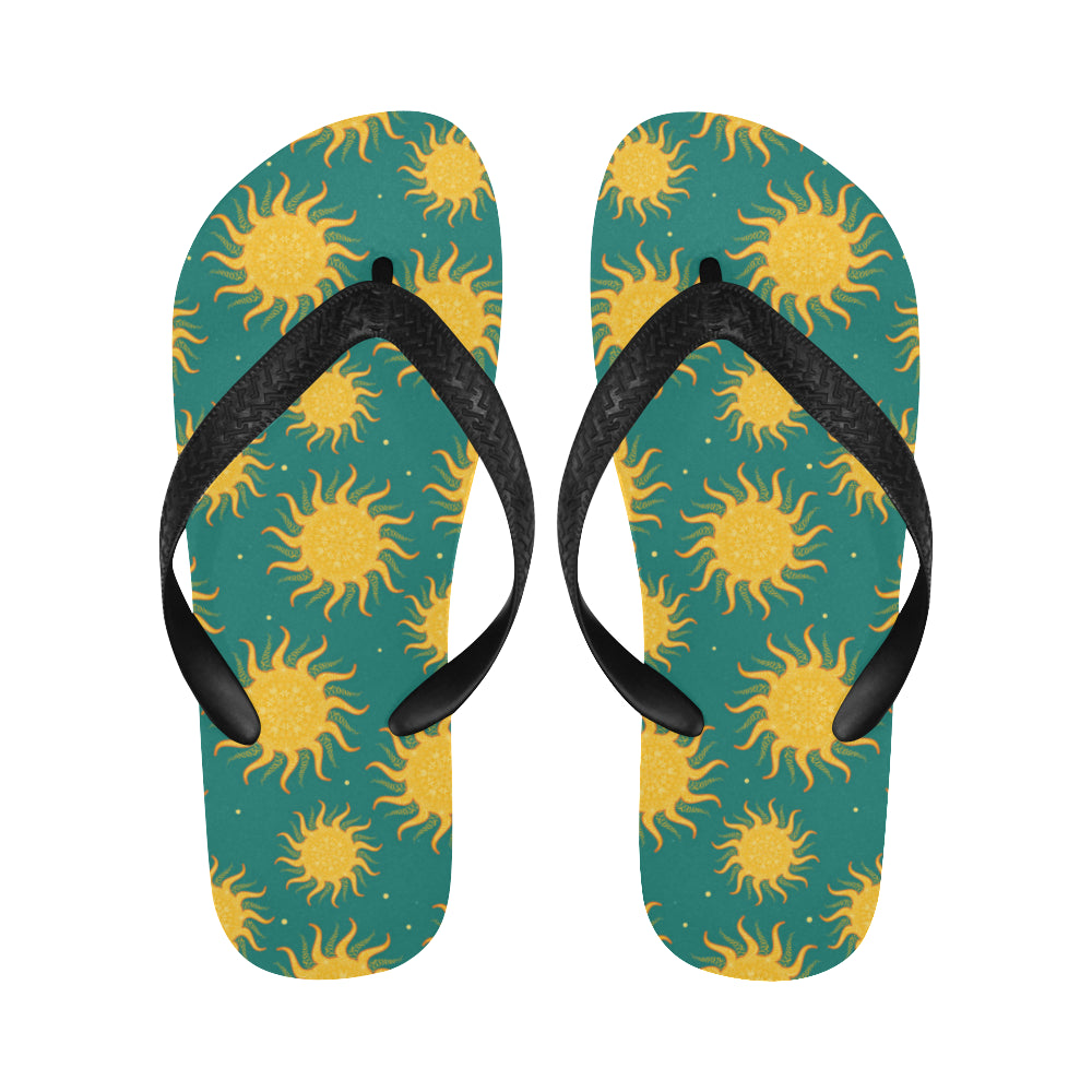 Sun green background Unisex Flip Flops is a uniqued design and limited item. It made to order, hand printed, and sewn with love in our factory.
