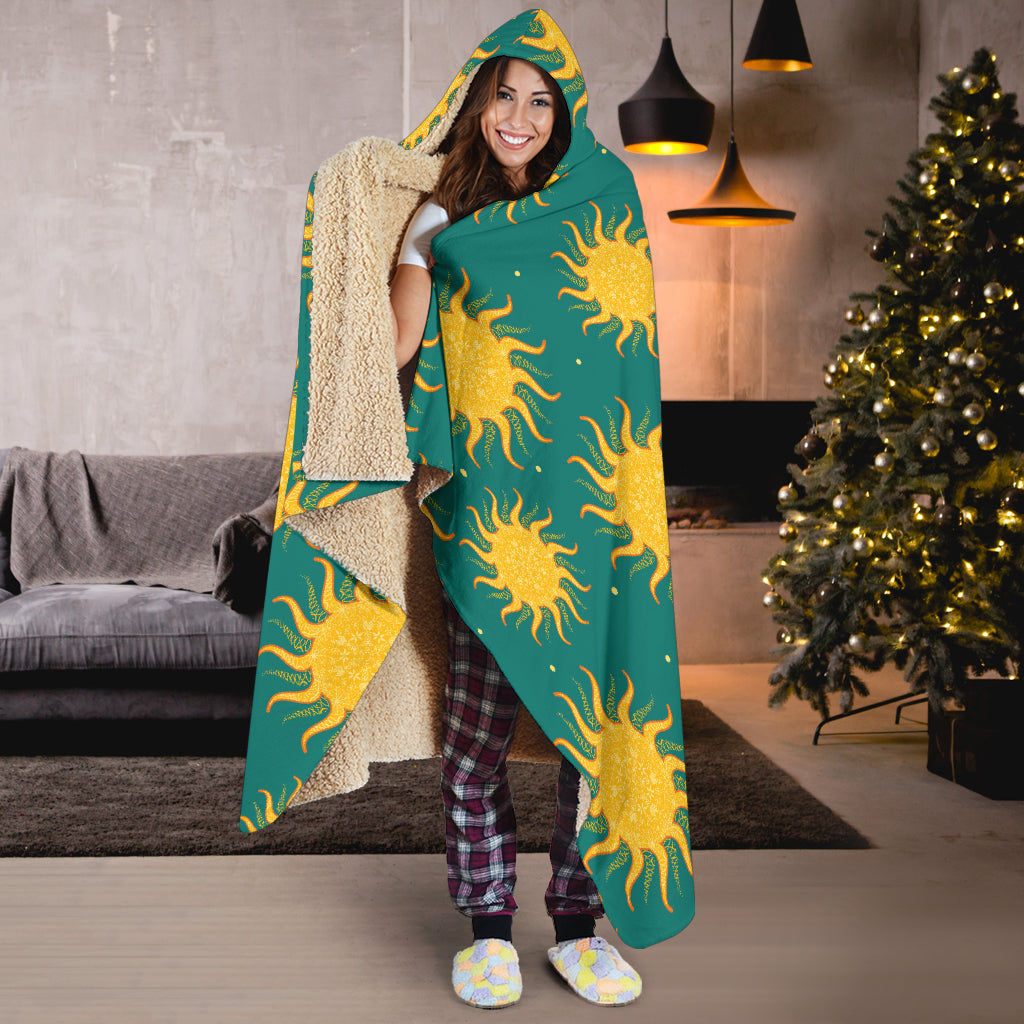 Sun green background Hooded Blanket are custom-made-to-order and handcrafted to the highest quality standards.